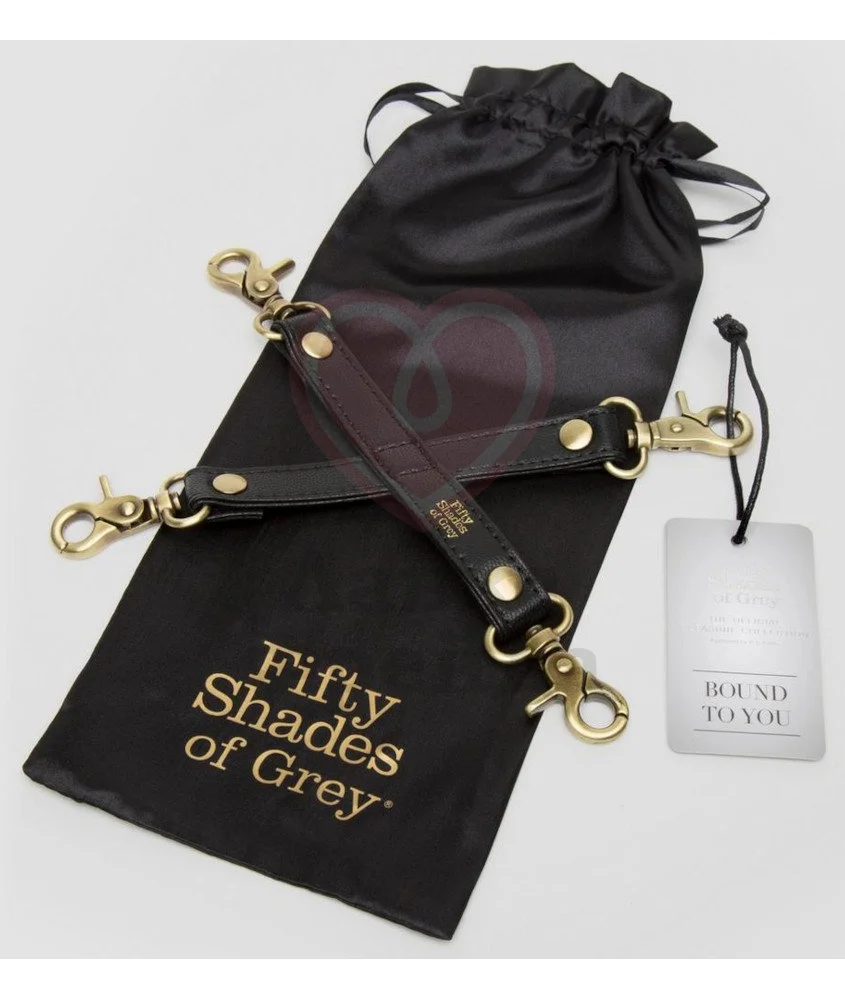 Элемент для бондажа Fifty Shades of Grey Bound to You представлен в виде крестовины с карабинами для закрепления ваших любимых БДСМ-девайсов. Аксессуар выполнен из искусственной кожи с металлической фурнитурой. Подобная крестовина позволит максимально интересно закрепить положение вашего партнёра, совсем как в ваших самых смелых фантазиях.