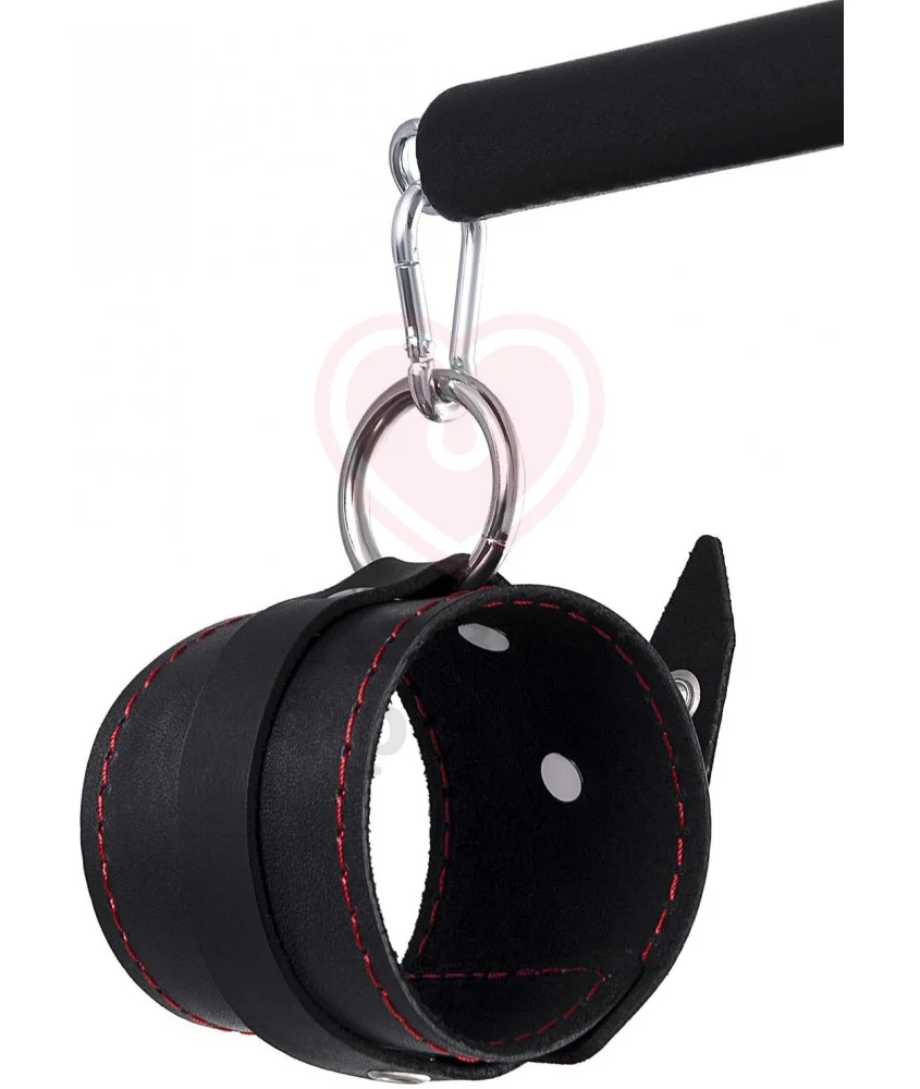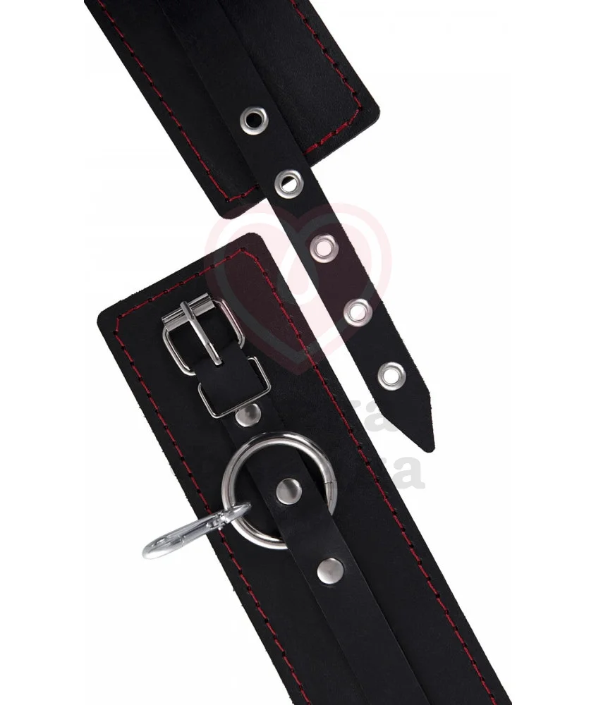 Бандажный набор Pecado BDSM состоит из длинной распорки, оснащенной кольцом и двумя карабинами, и кожаных оков, украшенных контрастной алой строчкой. Оковы подходят как для рук, так и для ног - распорка дает возможность зафиксировать партнершу с широко расставленными ногами. Размер оков регулируется пряжками, поэтому они подходят на запястья и щиколотки любых размеров. Материал набора - натуральная кожа, плотная и достаточно мягкая, чтобы не натирать и не доставлять дискомфорт во время использования.