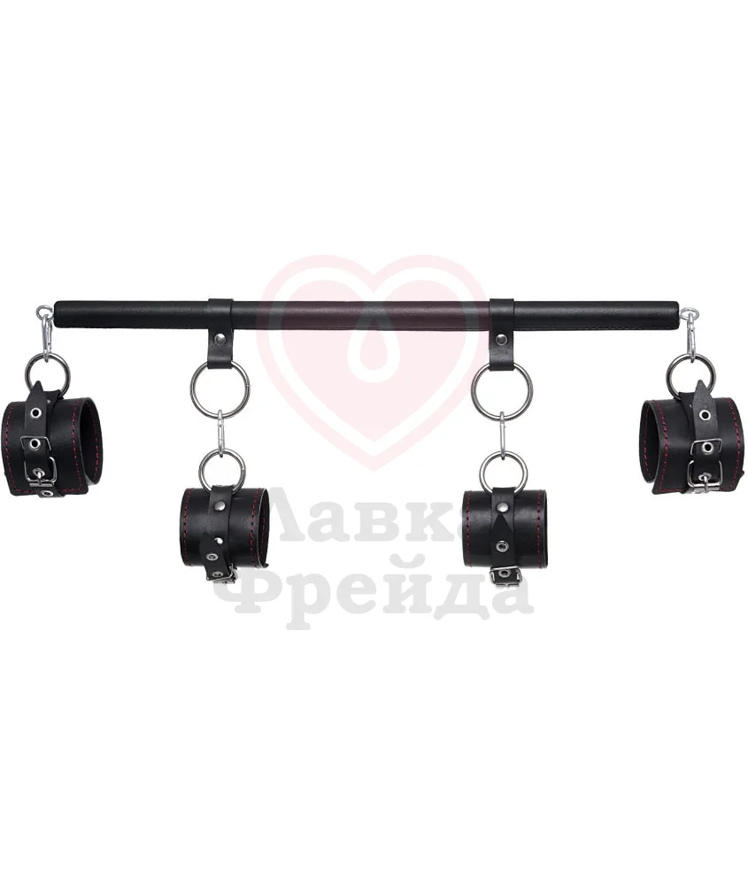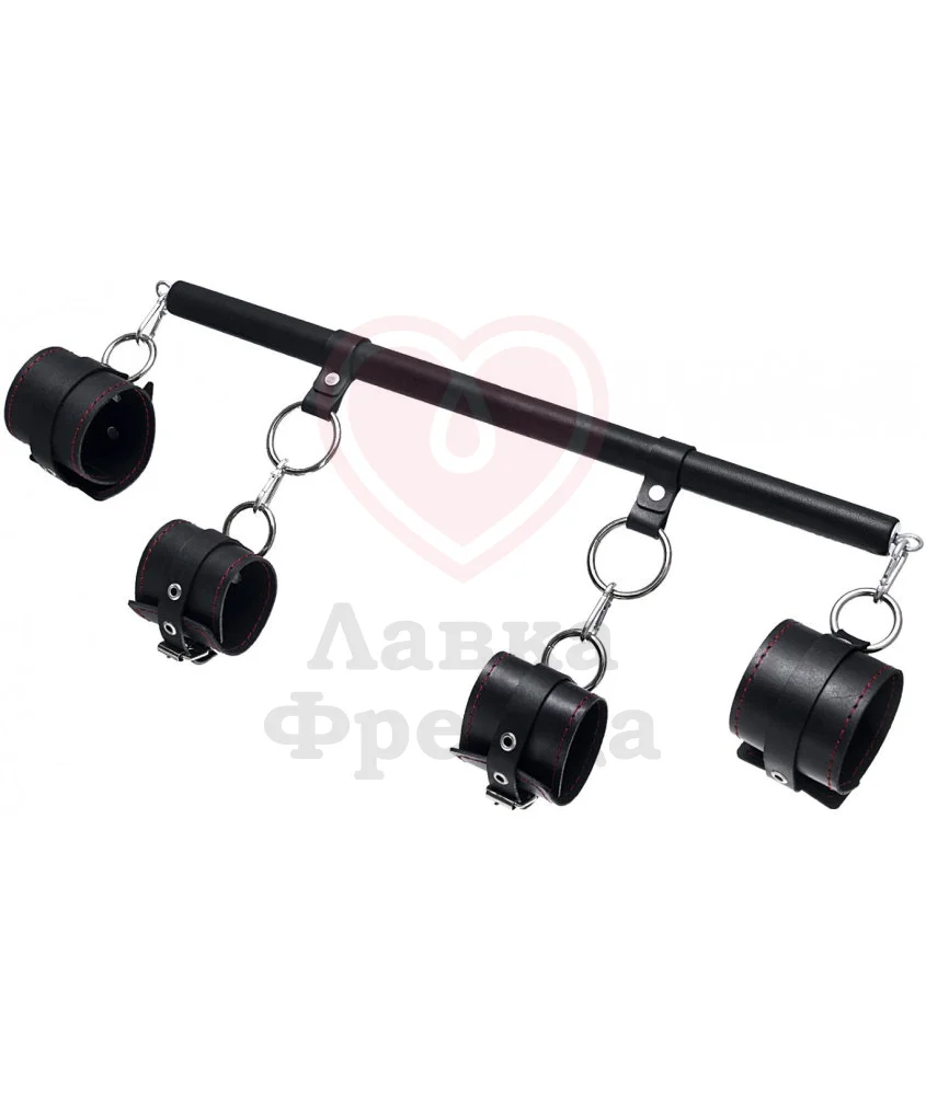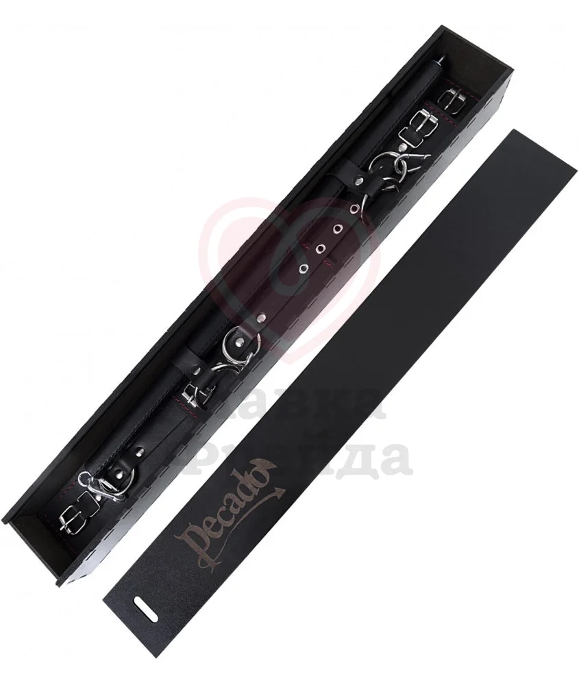 Набор для бандажа Pecado BDSM - это длинная распорка с 2 кольцами и 4 карабинами, и две пары оков для запястий и щиколоток. С помощью этого комплекта вы сможете практически неподвижно зафиксировать руки и ноги партнера, ограничиваясь лишь собственной фантазией.