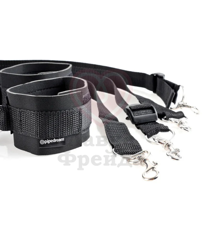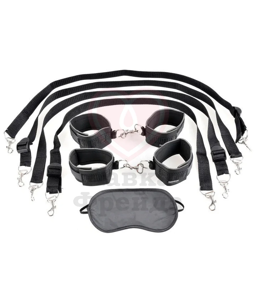 Набор фиксаций для кровати Cuff & Tether Set позволит разнообразить ваши ролевые игры в спальне, захватив вашего партнера в соблазнительных плен мягких оков. Комплект включает в себя эластичные ленты из нейлона, которые можно расположить на столбиках и у изголовья кровати или закрепить на иных местах или предметах мебели, которые покажутся вам удобными и устойчивыми. Затем на эти ленты нужно закрепить наручники и оковы при помощи карабинов, а затем — захватить вашего партнера в добровольное подчинение. Оставьте вашего партнера в зафиксированной позе и и исполняйте самые заветные желания друг друга.