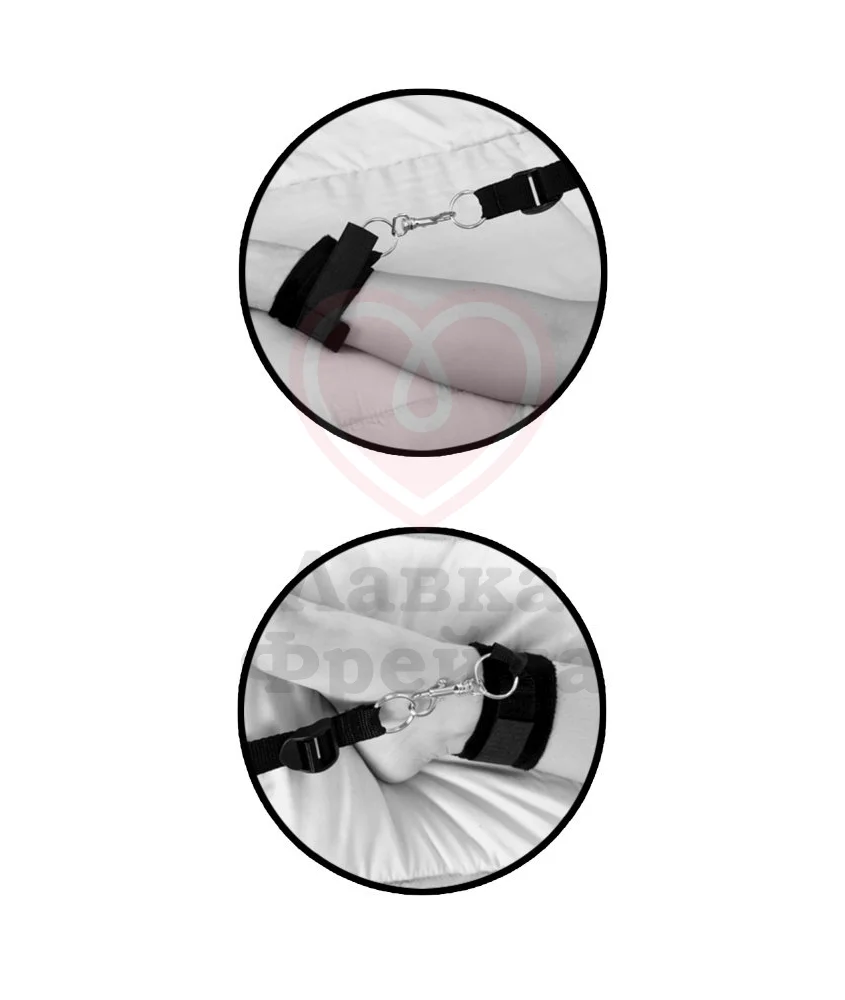 В комплект входит 4 троса с мягкими наручниками и наножниками, а также карабины из металла для прочной фиксации ремней и маска на глаза. Нейлон только подчеркнет приятные ощущения.