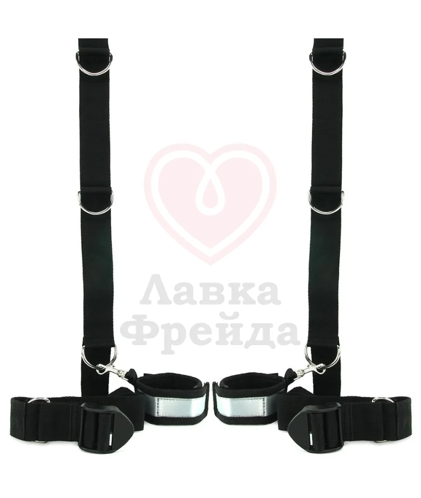 Манжеты могут также использоваться и отдельно – присоедините их с помощью карабинов к прутьям кованой кровати или используйте любым другим способом. Кроме 2 пар манжет для рук и ног в комплекте идут ремни для фиксации длиной 228 см с несколькими уровнями регулировки как для зажимов, так и для подгона под особенности двери.
