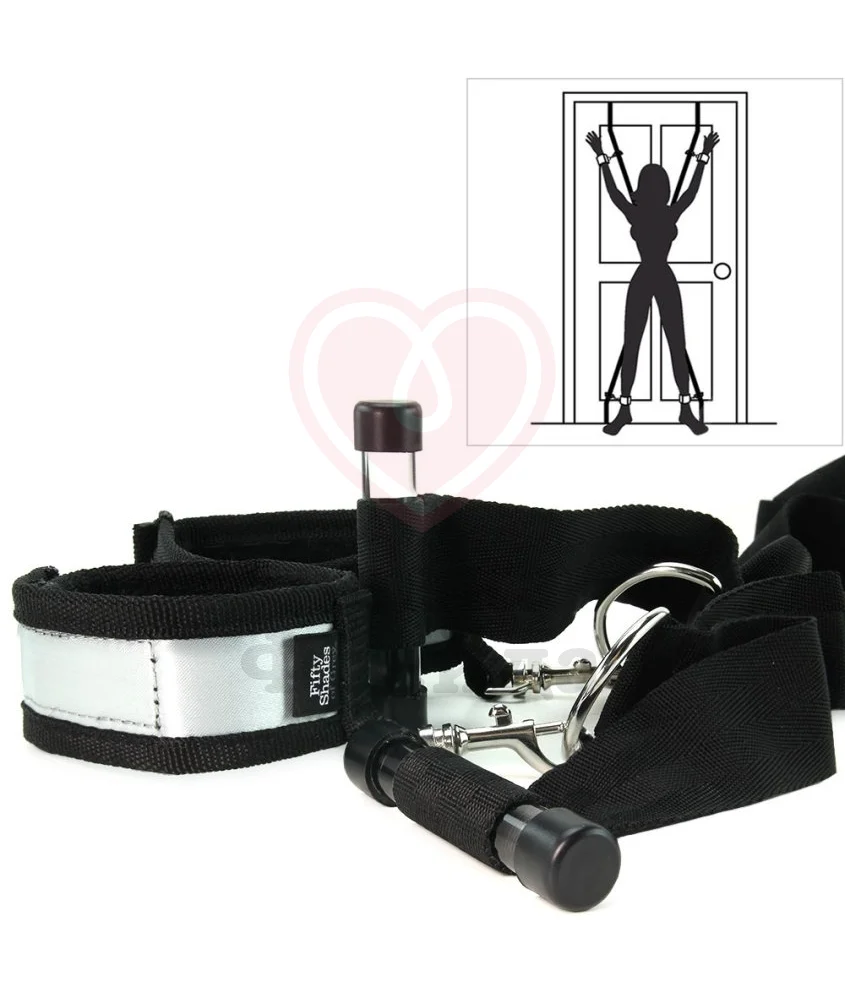 Набор "50 оттенков серого" Stand to Attention идеален для связывания в самых разных позах. Он предназначен для использования в проеме двери: тонкие лямки закидываются за дверь и фиксируются, а основной ремень расположен со стороны, где будут происходить все действия вашего сексуального спектакля. Мягкие манжеты, не причиняющие дискомфорта, дадут надежную фиксацию и не позволят партнеру выскользнуть из них или расстегнуть, даже если сильно захочется.
