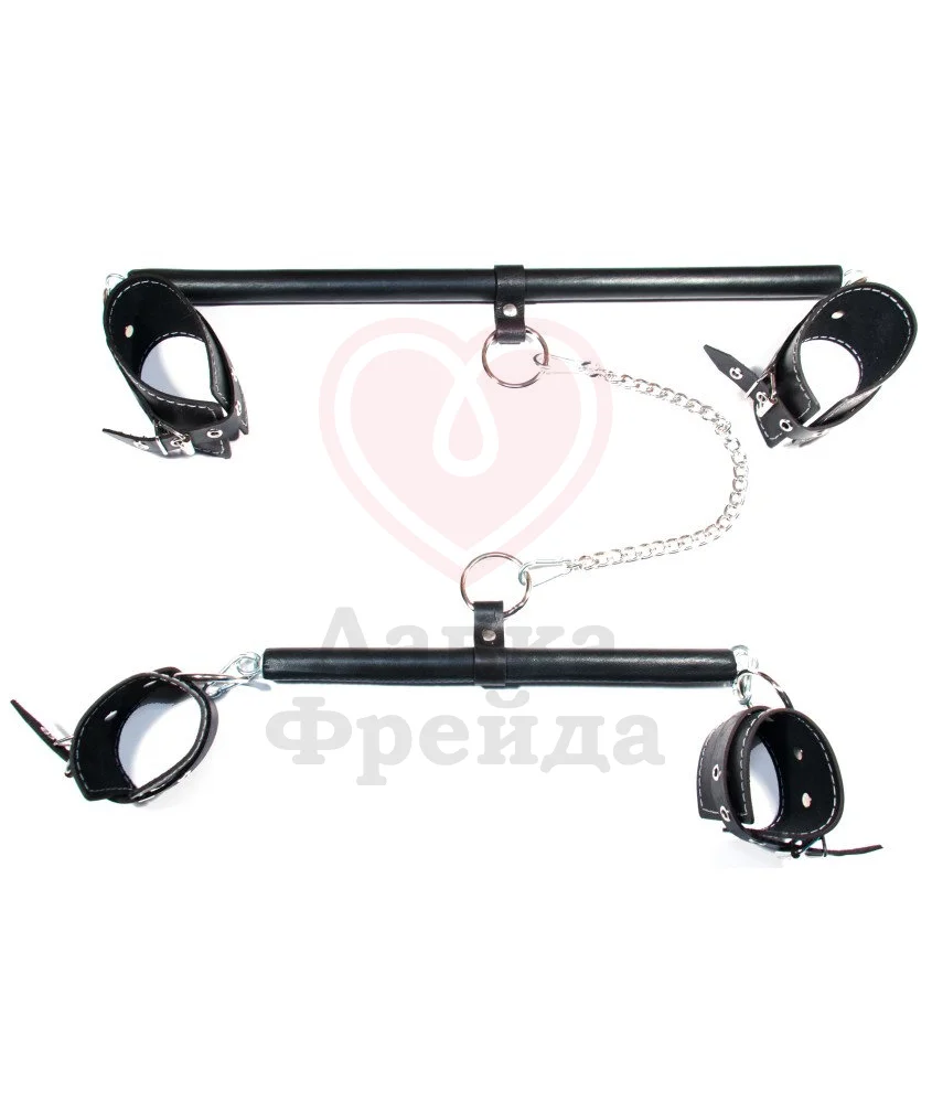 Распорки помогут зафиксировать ноги и руки партнера в разведенном состоянии. Теперь вы сможете сделать все что пожелаете! Аксессуары крепятся карабинами к жесткой перекладине, от чего диапазон движений становится ограниченным.