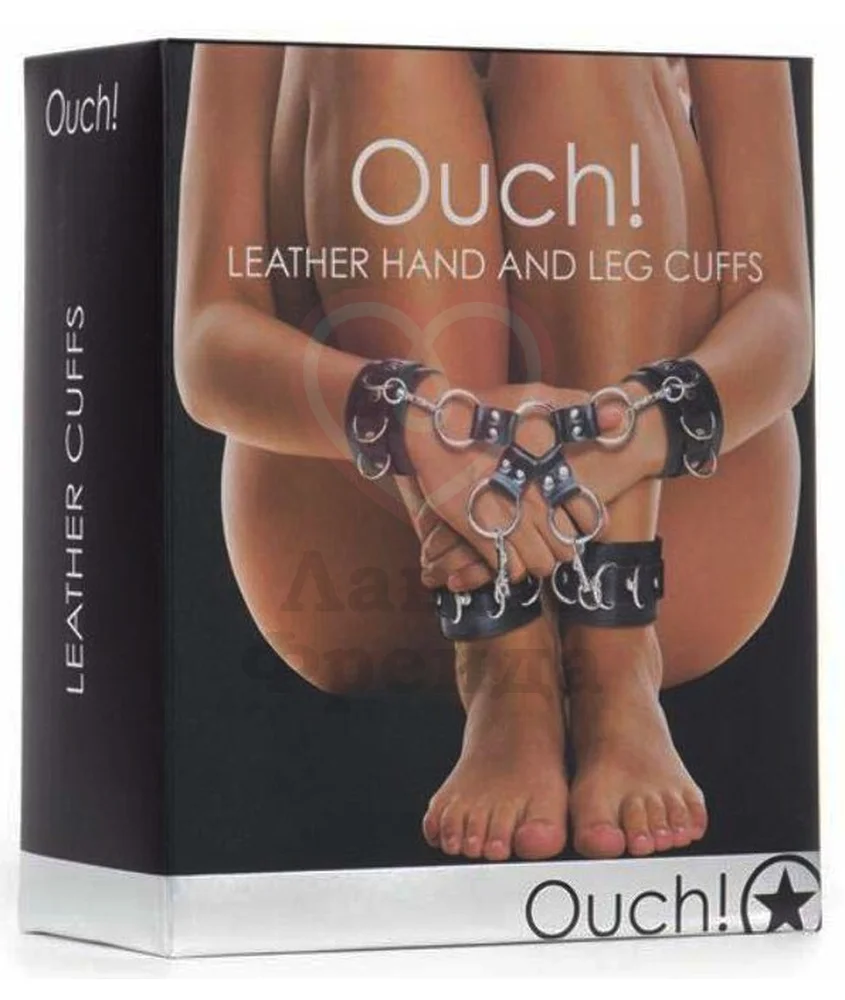 Наручники и оковы с крестообразным креплением Ouch! Leather Hand and Leg Cuffs