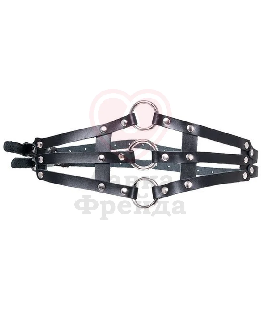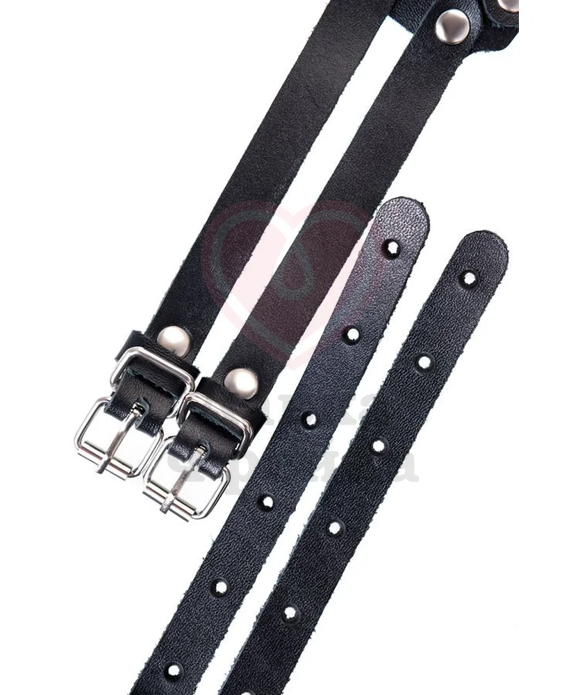Эффектные металлические элементы придают образу большей дерзости и эротичности. К кольцам также можно прикреплять любые другие БДСМ элементы с карабинами. Пояс застегивается на удобные пряжки, которые дают возможность регулировать обхват, добиваясь идеальной посадки.