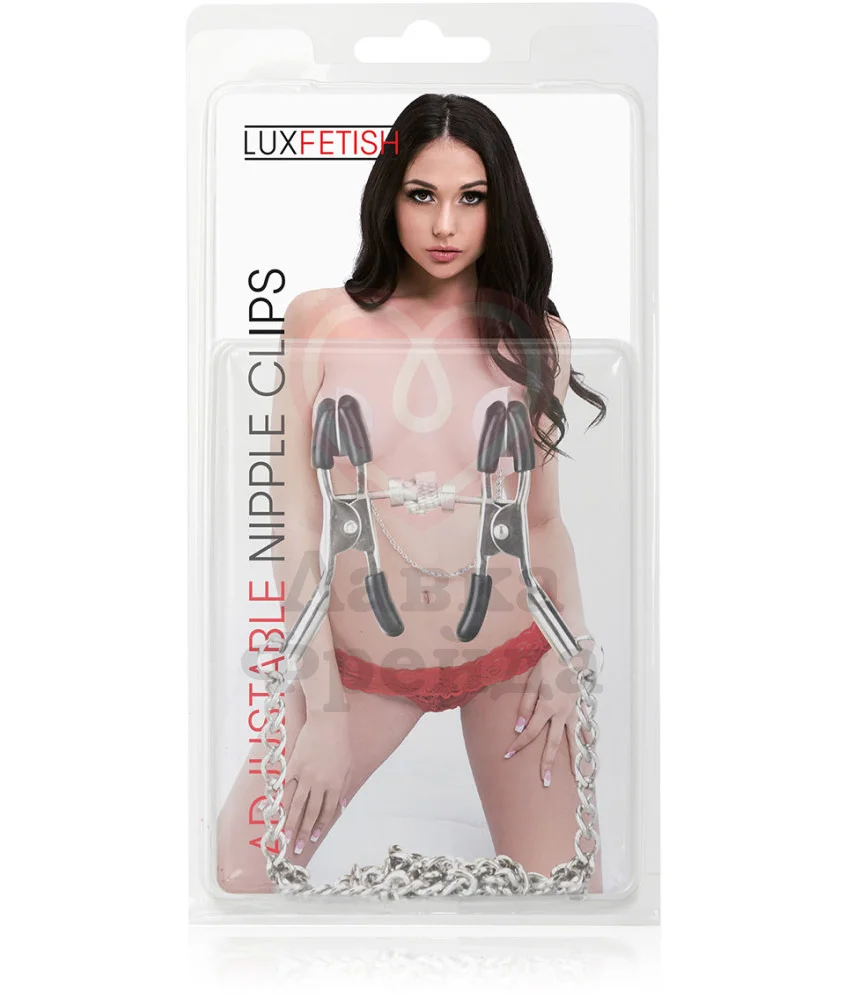 Регулируемые зажимы для сосков с цепочкой из металла Adjustable Nipple Clips подойдут для легких и интенсивных игр в стиле БДСМ. Сила зажима легко регулируется винтиками, и вы можете выбирать степень в соответствии с личными предпочтениями.
