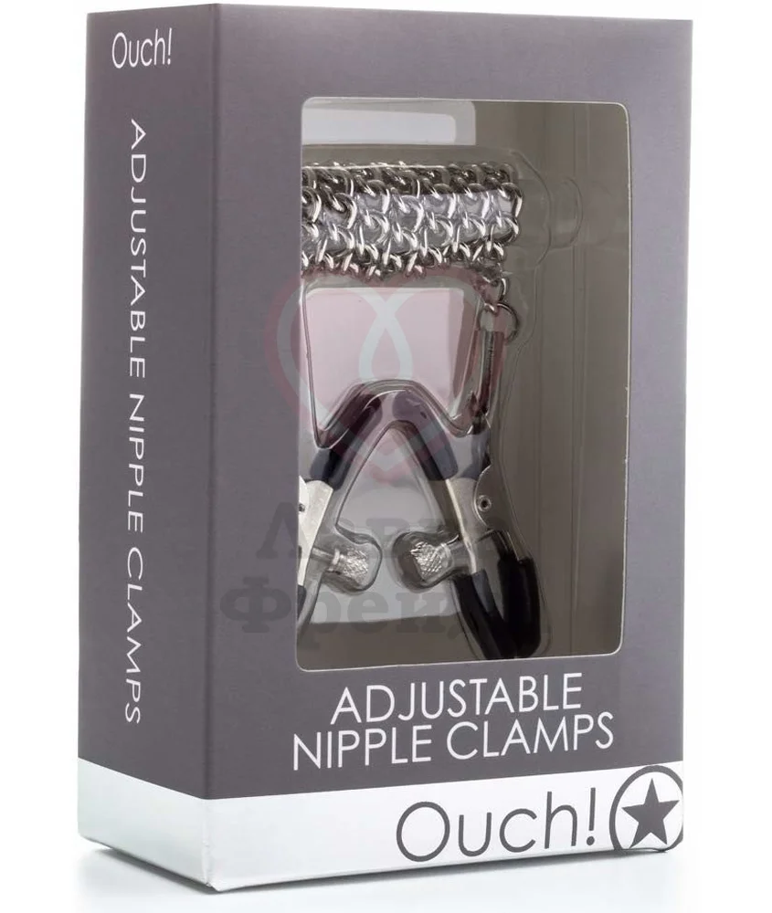 Зажимы Ouch! Adjustable Nipple Clamps плотно обхватят ваши соски, доставляя сильную стимуляцию. Таким образом соски набухают, становятся более чувствительными, а вы — сильнее возбуждаетесь. Силу воздействия можно регулировать. Зажимы соединены друг с другом цепочкой 35,5 см длиной, она добавляет вес и за неё можно тянуть во время игры.