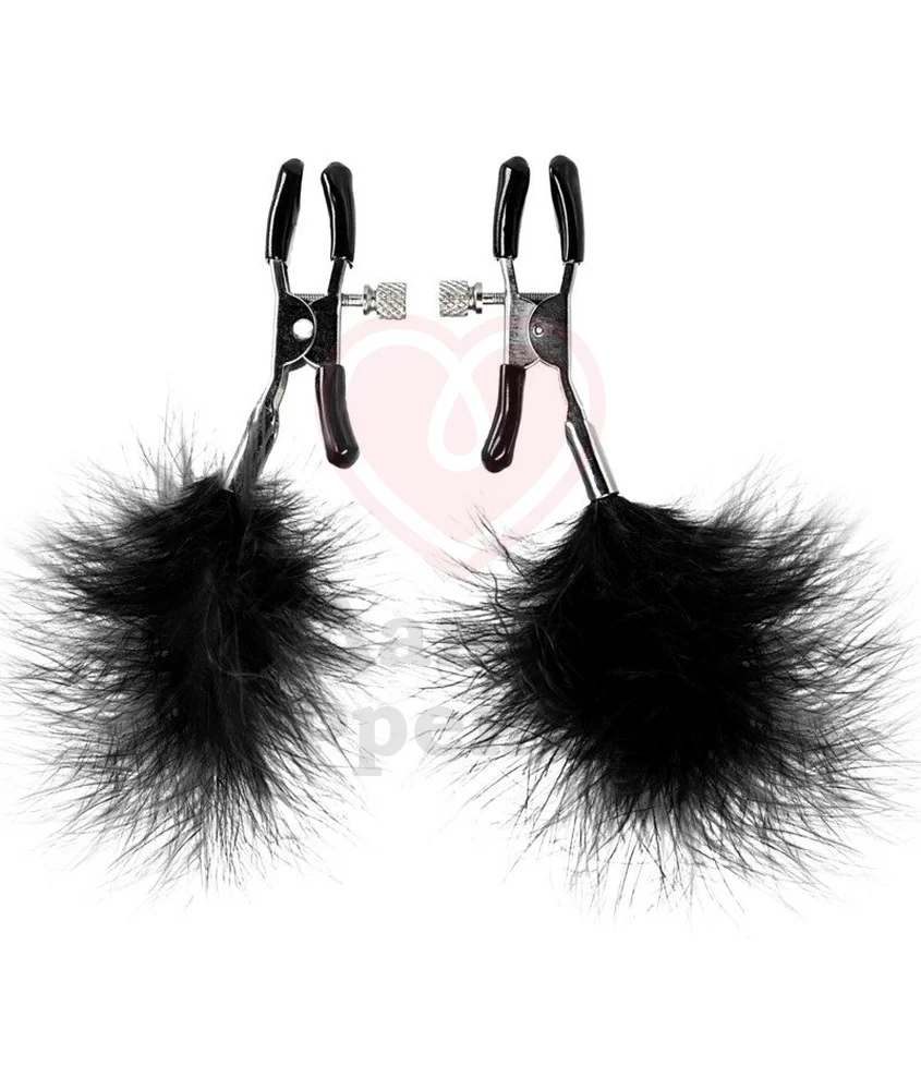 Зажимы для сосков, украшенные перьями, оказывают сразу два тактильных удовольствия сразу. Во-первых, это сила, с которой они воздействуют на чувствительные места — идеально для тех, кто любит дополнительную болевую стимуляцию. Во-вторых, это мягкое прикосновение легких перышек — контраст приятной нежности разовьет вашу чувствительность. Сила зажимов регулируется при помощи специальной ручки, а кончики покрыты более эластичным материалом для комфортных ощущений.