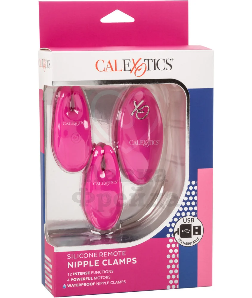 Зажимы для сосков с вибрацией и пультом Remote Nipple Clamps розовые