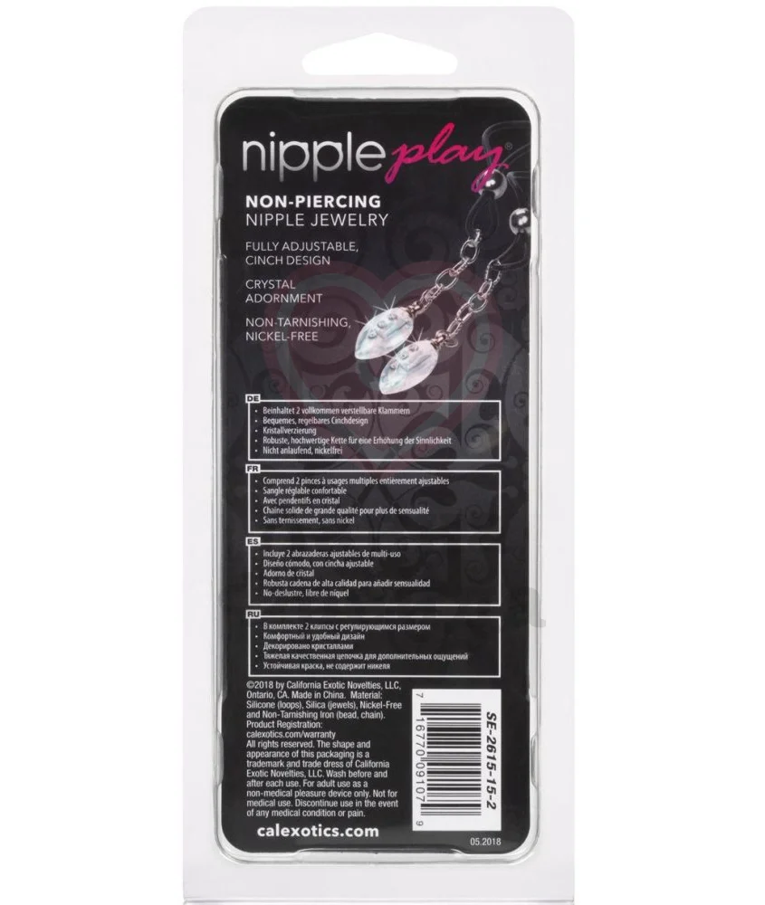 Зажимы с кристаллами Nipple Play Non-Piercing Crystal Teardrop вдохновят вас и вашего партнера на новые фантазии. Вы получите чувственное удовольствие и возбуждение, когда ваш партнер будет затягивать сверкающее украшение на вашей груди. Аксессуар поможет создать соблазнительный и неповторимый образ.