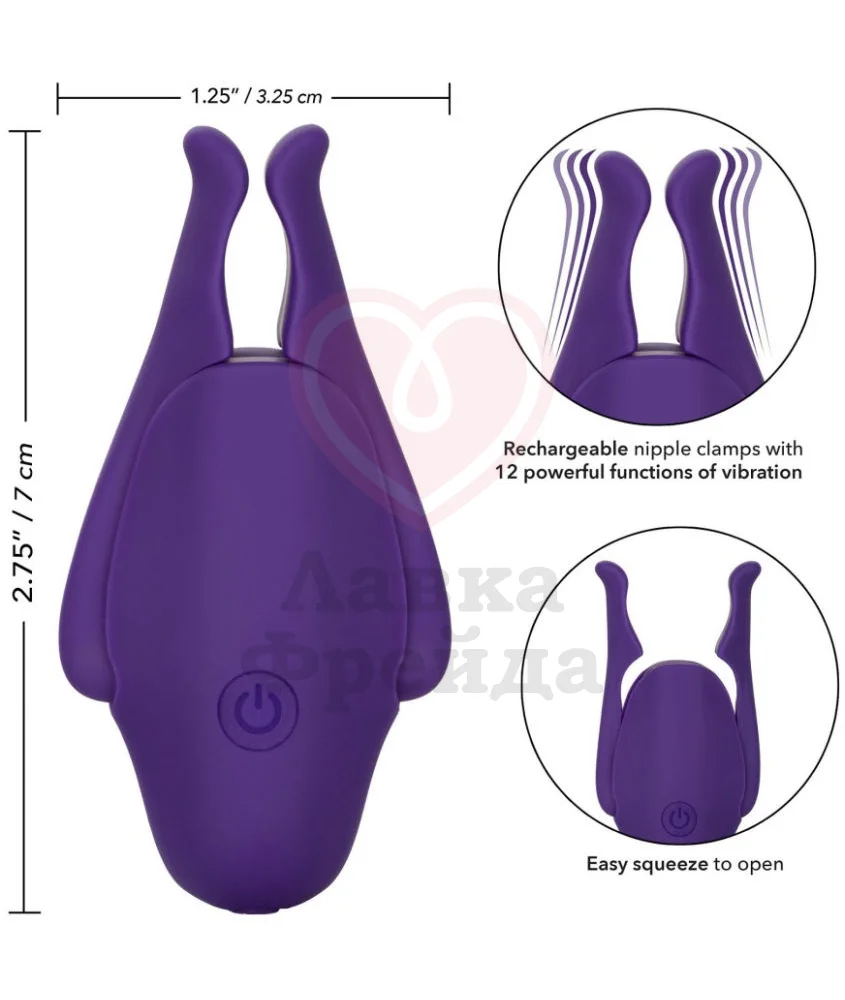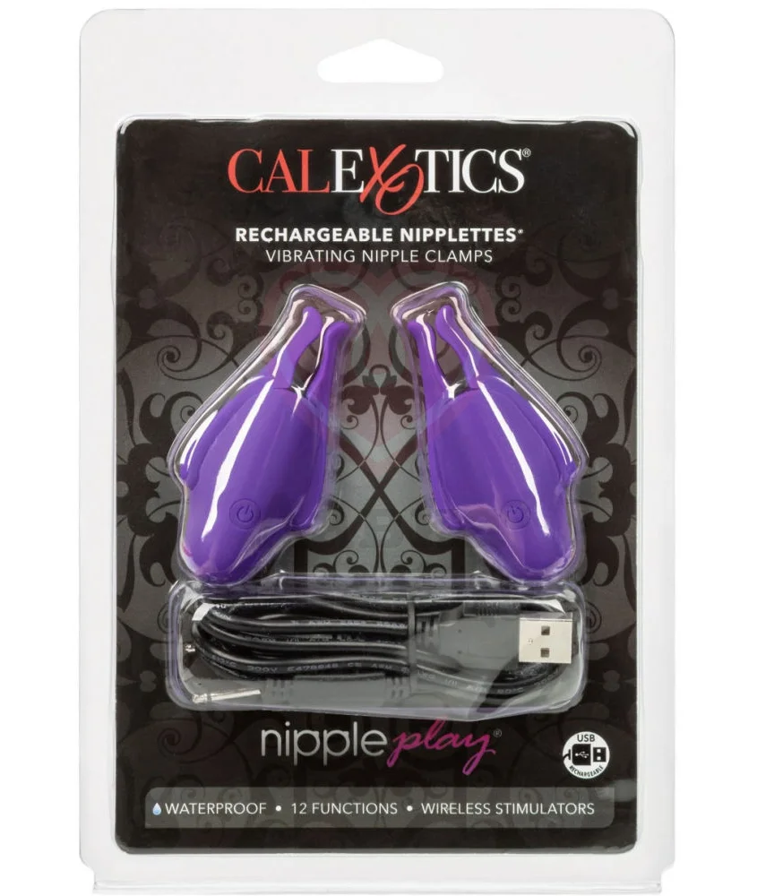 Зажимы на соски Nipple Play Niplettes имееют 12 режимов вибрации, которые переключаются кнопкой на корпусе. Сами по себе являются прекрасным эротическим нарядом, но в то же время оказывают яркую и чувственную стимуляцию этим эрогенным участкам тела. С помощью крепления в виде прищепки удобно надеваются и снимаются. Могут использоваться как мужчинами, так и женщинами, в душе или ванной, однако в любом случае длительность их ношения недолжна превышать 30 мин. Игрушки безопасны, не оставляют травм или микротрещин. Заряжаются при помощи USB-кабеля, который вход в комплект.
