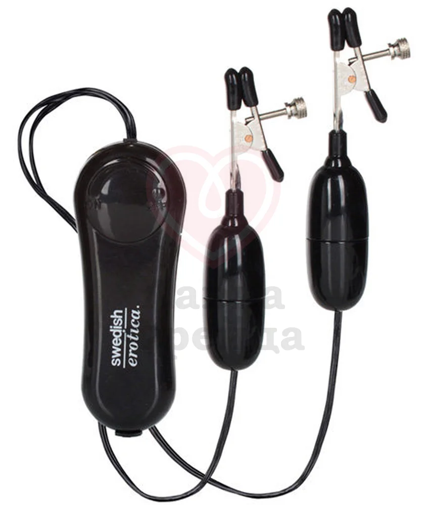 Зажимы на соски Vibrating Nipple Clamps станут приятным помощником для тех, кто хочет ещё сильнее раскрыть свою сексуальность. Игрушка выполнена из сочетания металла и ABS-пластика. Длина зажима с подвеской – 11 см, длина подвески – 7 см. Зажимы позволяют регулировать силу сжатия. Выносной пульт управления передаёт вибрацию в 2 мотора, которые находятся в пластиковых капсулах-подвесках. Игрушка работает от 2 батареек типа АА (приобретаются отдельно).