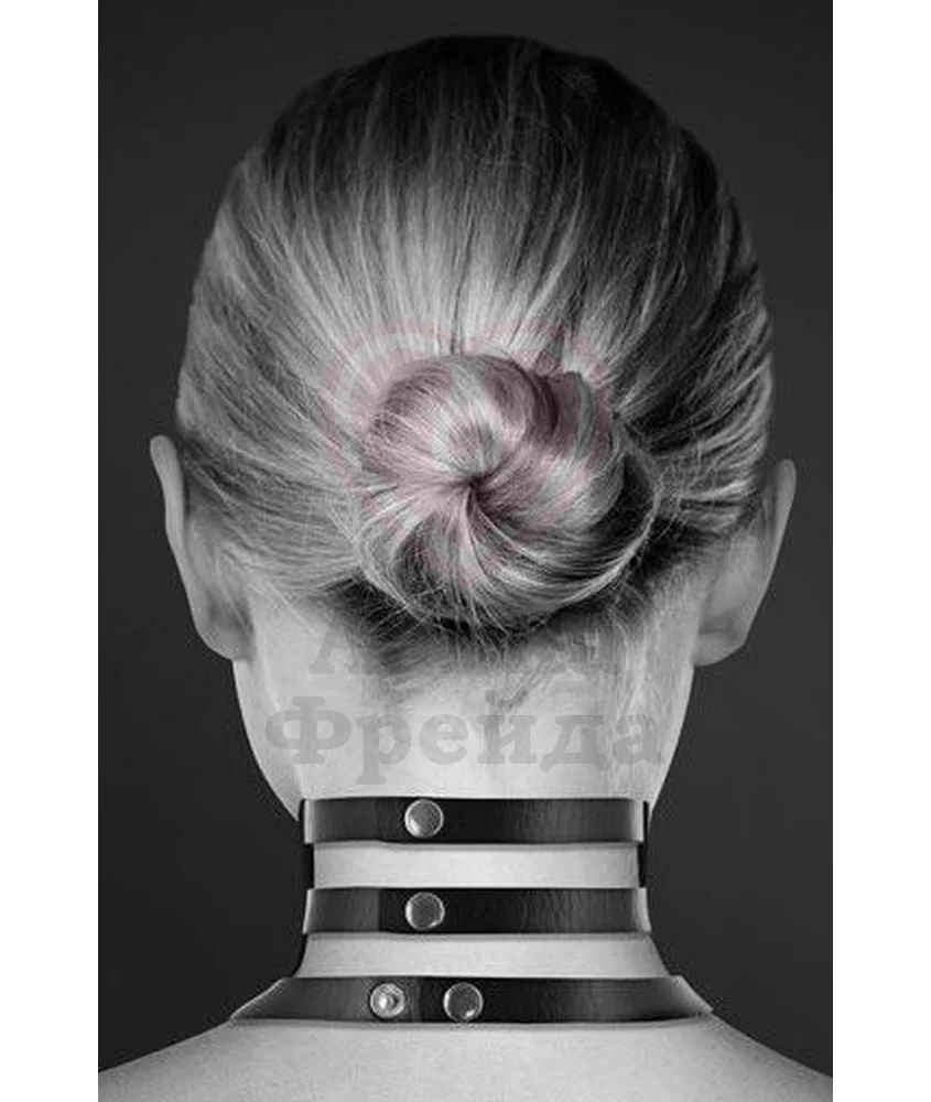 Широкий ремешок из чёрной эко-кожи позволяет отрегулировать его индивидуально по размеру шеи, а металлические детали придают ошейнику своеобразной неповторимой роскоши.