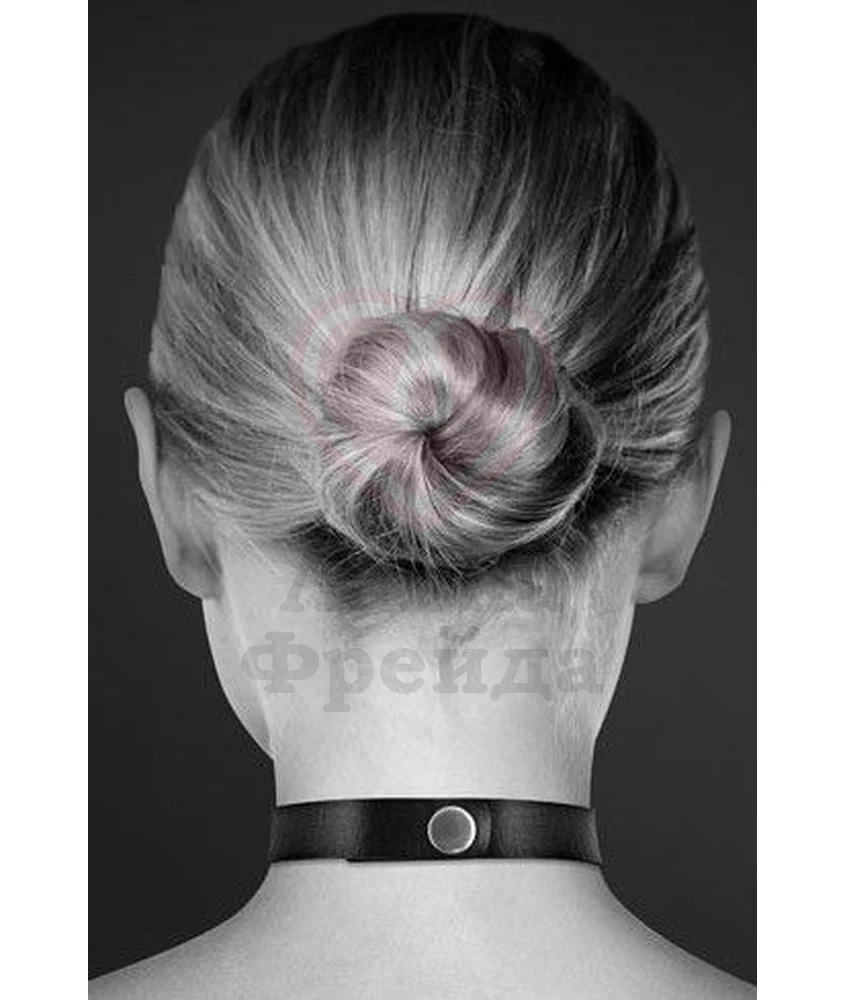 Изящный ремешок из чёрной эко-кожи позволяет отрегулировать его индивидуально по размеру шеи, а металлические детали придают ошейнику своеобразной неповторимой роскоши.