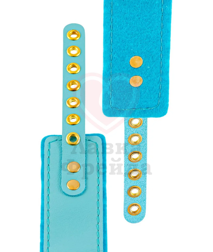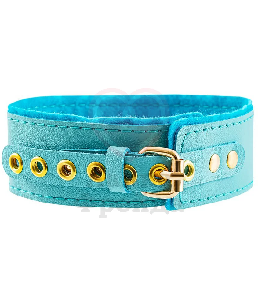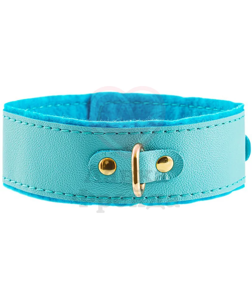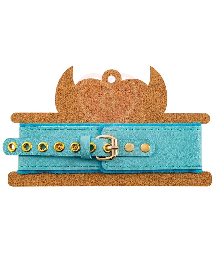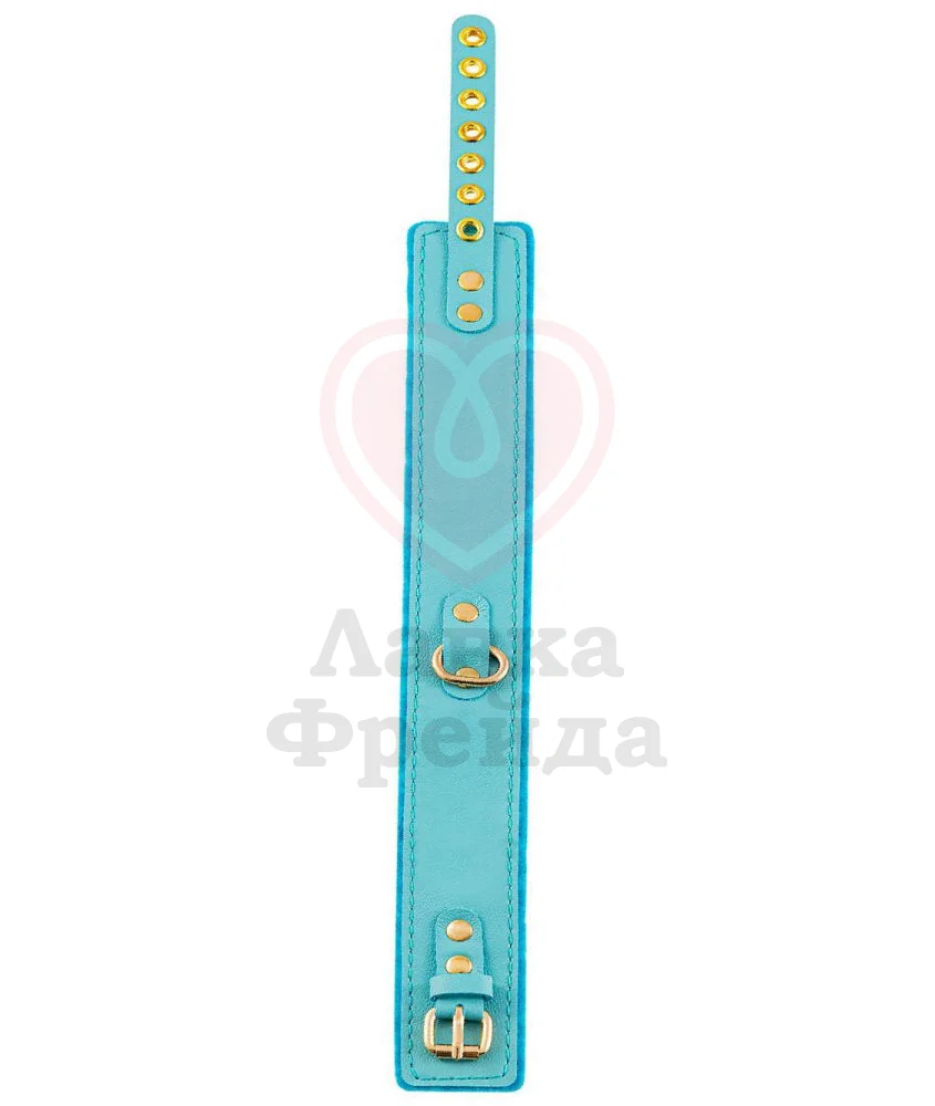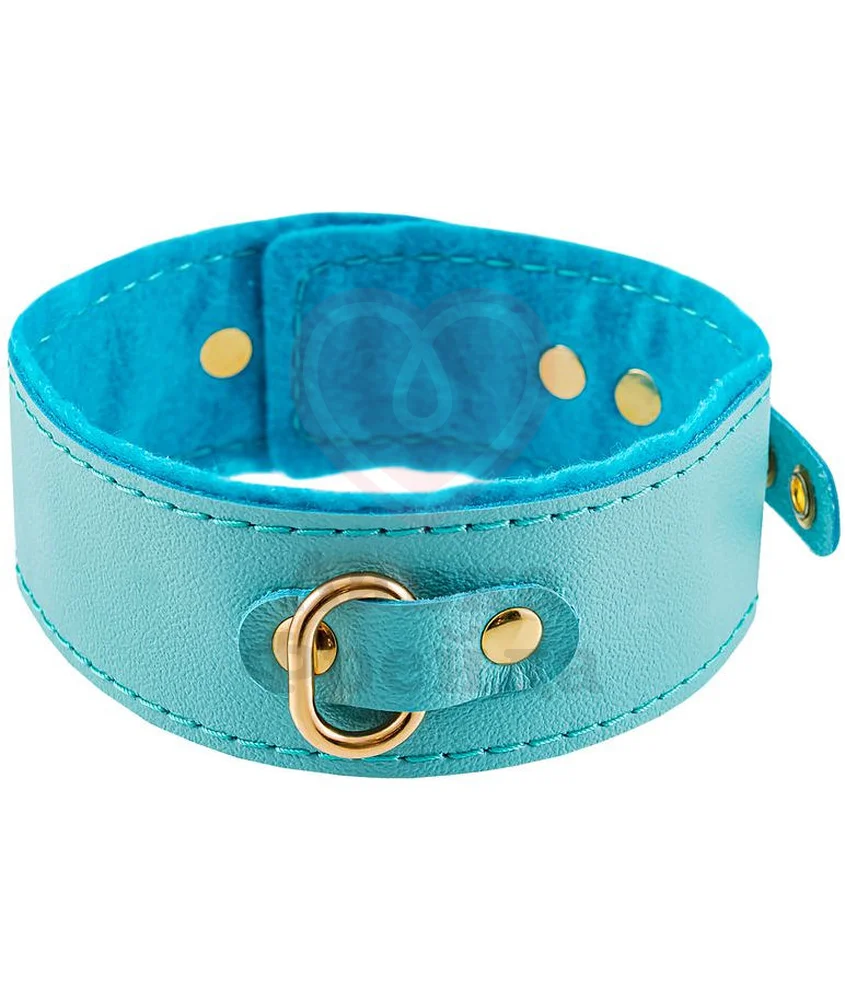 За счёт регулируемых ремней ярко-голубой аксессуар будет впору на любой обхват как мужской, так и женской шеи, позволяя полностью отдаться жарким БДСМ экспериментам. К стальному кольцу по центру можно подсоединить поводок или любое другое изделие с карабином. Украшение ручной работы отличается надёжной фиксацией, устойчивостью к повреждениям и долговечностью.