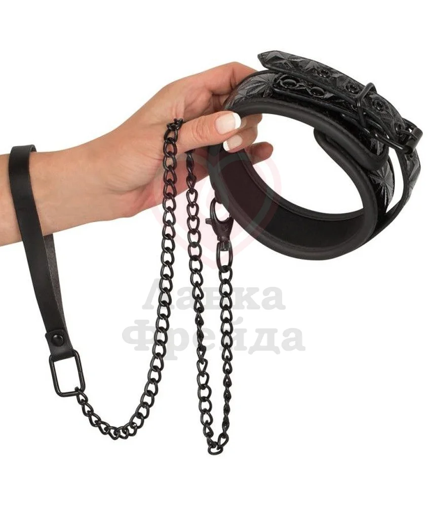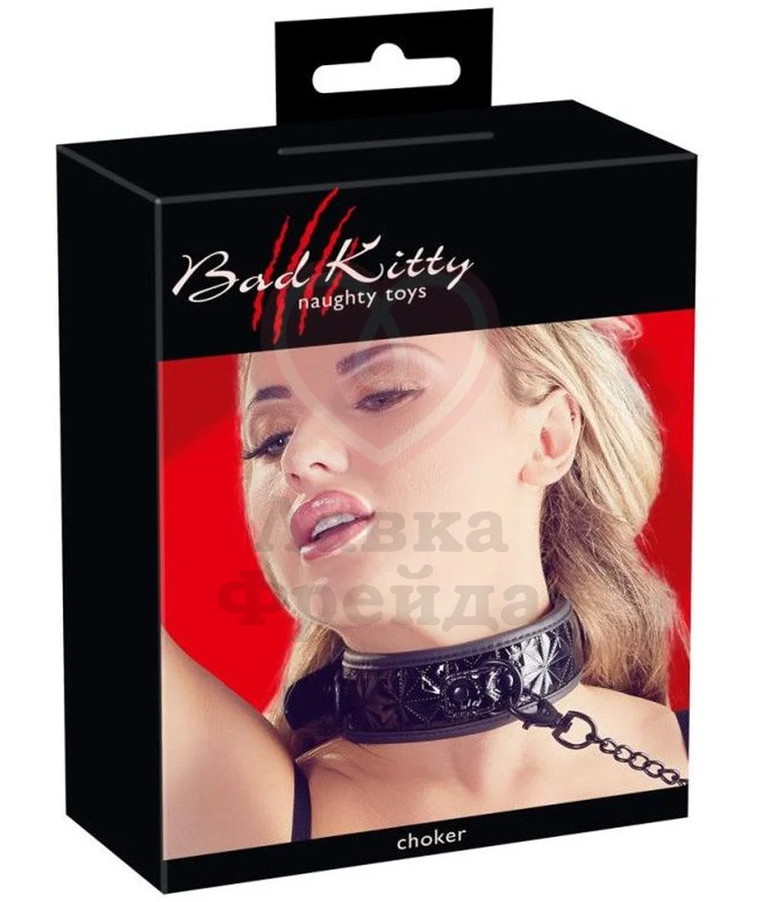 Ошейник Bad Kitty выполнен из полиуретана с краями дополнительно обработанными резиной и внутренней мягкой подкладкой для более комфортного ношения. Поверхность игрушки покрыта объемным текстурным рисунком. Поводок крепится к ошейнику через колечко при помощи карабина, длина цепочки 88 см.