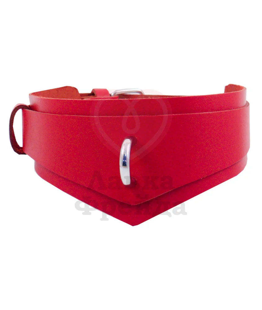 Ошейник Лунный Свет выполнен из двух слоев кожи — широкой части и чуть более узкого ремешка сверху. Спереди расположено широкое вертикальное полуколечко для закрепления поводка. Размер регулируется металлической пряжкой сзади. Обхват ошейника от 33 до 39 см.