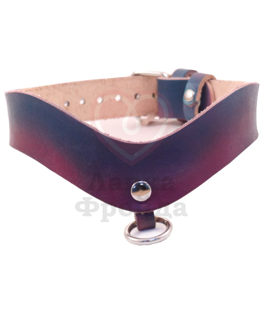 Ошейник от мастерской Лунный Свет имеет особую анатомическую форму с изгибом на шее, за счет чего аксессуар удобно носить в течение длительного времени. Он выполнен из единого отреза натуральной кожи и имеет небольшое металлическое колечко в центре для вашего поводка. Отлично подойдет как для ролевой игры, так и в качестве стильного аксессуара. Толщина материала 2 мм, обхват ошейника регулируется от 33 до 39 см.