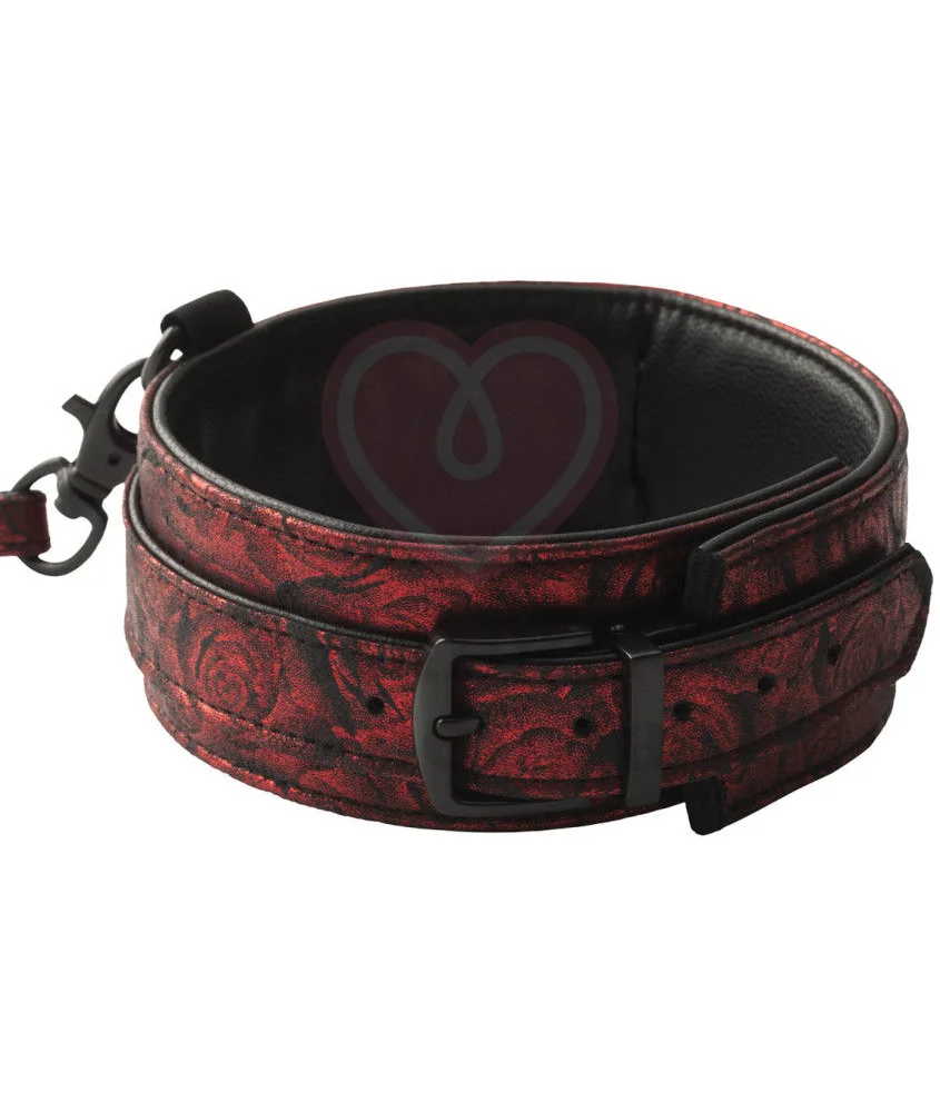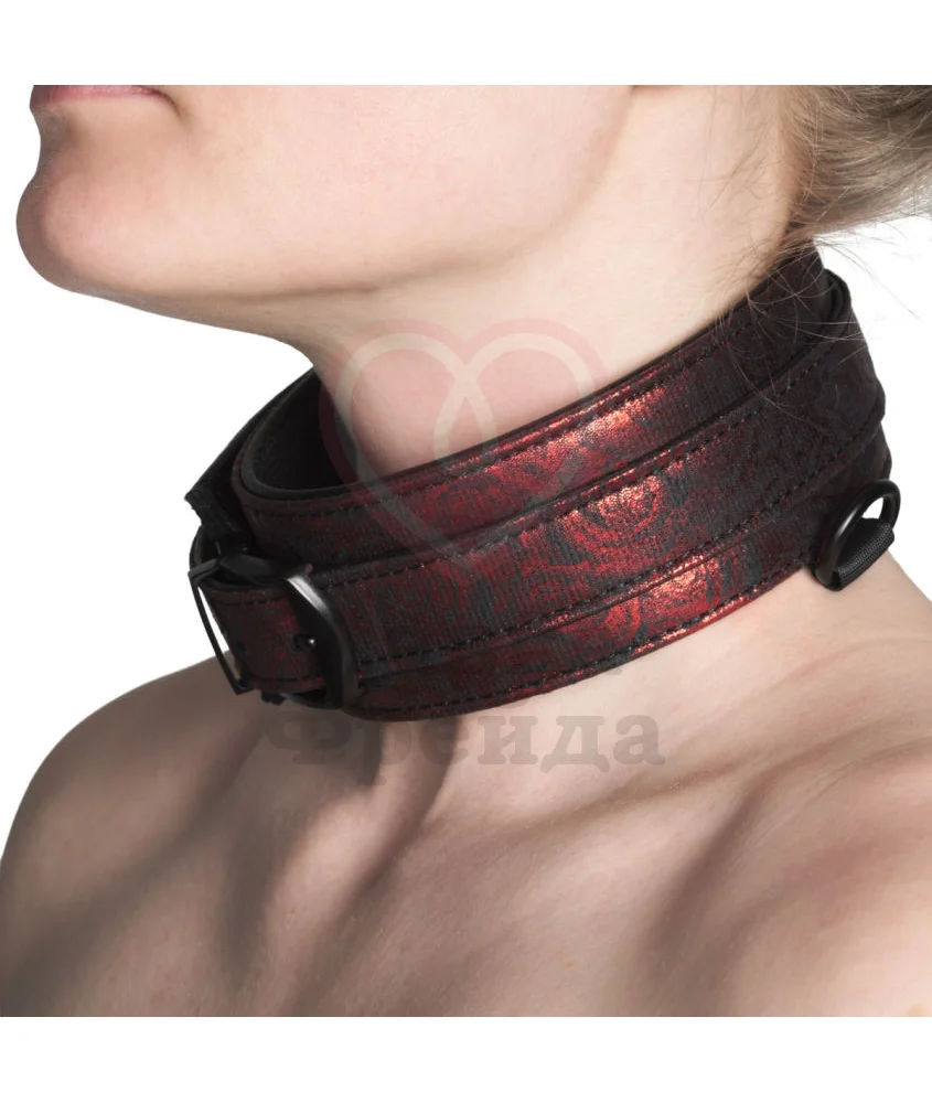 Ошейник из серии '50 оттенков серого' Sweet Anticipation выполнен из искусственной черной кожи и принта с красными розами: вы всегда сможете выбрать понравившуюся вам сторону и сделать её лицевой. Длина ошейника — 47 см, ширина 5,3 см. Внутри ошейника — дополнительная подкладка из мягкого материала для комфортной посадки во время использования.