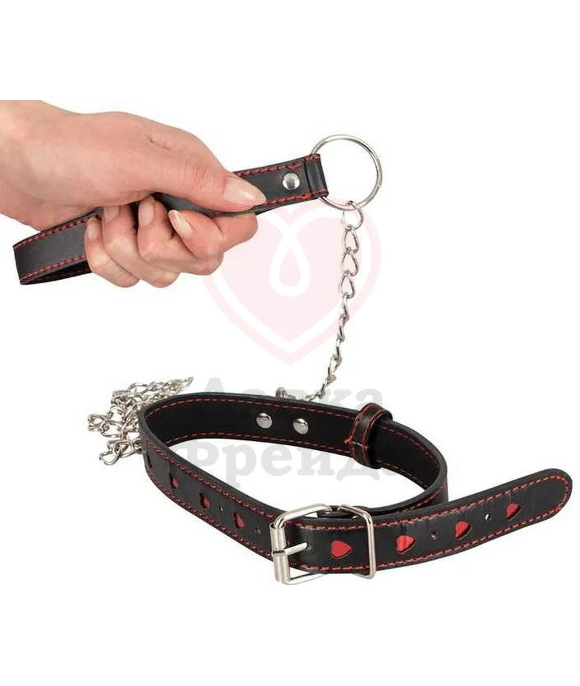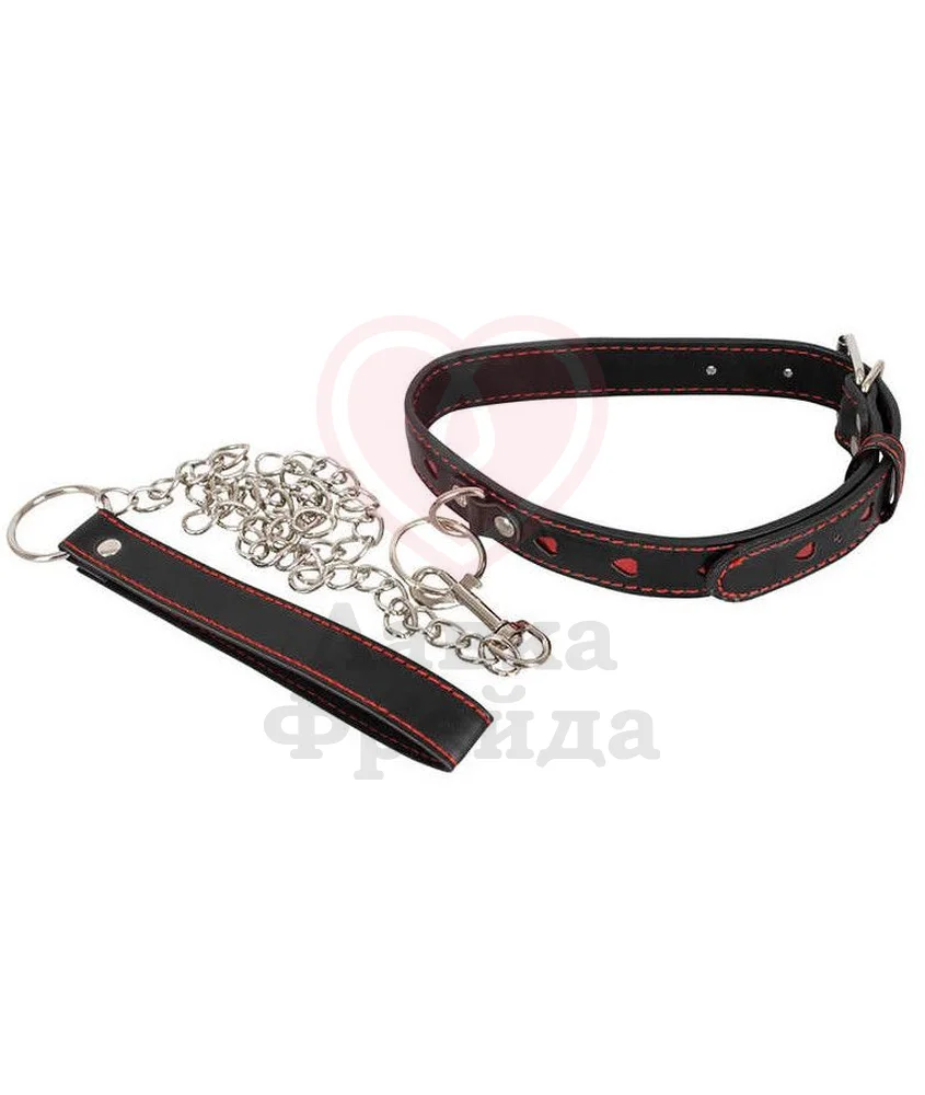 Легко регулируется по объему шеи от 35 до 48 см с помощью пряжки. Длинная металлическая цепочка, с выполненной в одном стиле петлей для руки, легко и быстро крепится с помощью карабина. Длина поводка вместе петлей 78 см. Идеальное сочетание черного и красного цвета делает аксессуар особенным.