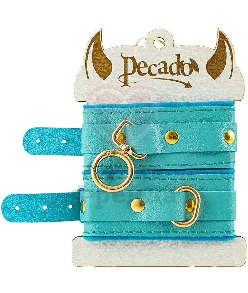 Оковы на ноги Pecado BDSM предназначены для обладателей узких лодыжек - с ними вы легко и с комфортом обездвижите партнёршу, погрузившись в мир пикантных БДСМ удовольствий. Аксессуар выполнен из ярко-голубой натуральной кожи, ручная работа. При правильном использовании, подкладка из фетра не натирает и не оставляет следов даже на самых нежных участках.