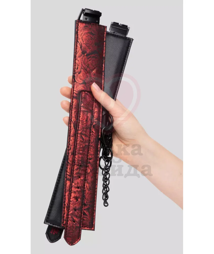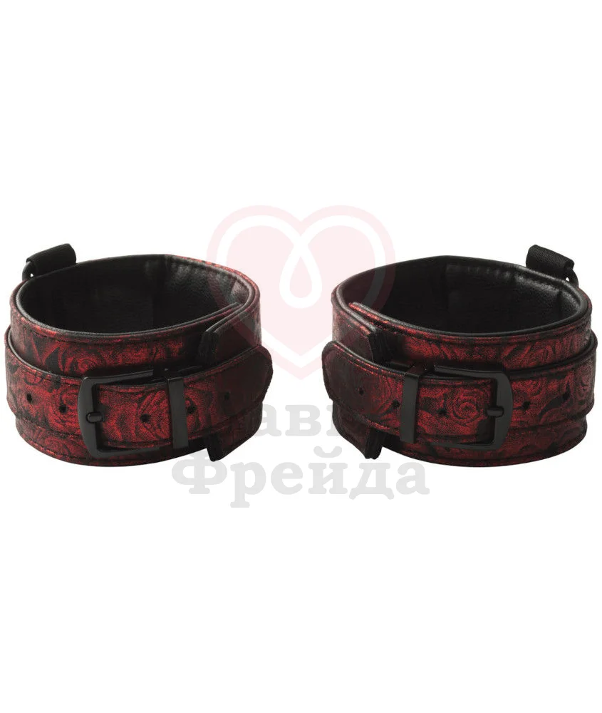 Оковы на ноги из коллекции '50 оттенков серого' Sweet Anticipation выполнены одновременно в двух вариантах — черной искусственной коже, а также принтом с красными розами — выбирайте понравившуюся сторону вам сторону и используйте её в качестве лицевой. Внутри оков расположена дополнительная мягкая подкладка для особенного комфорта во время использования.