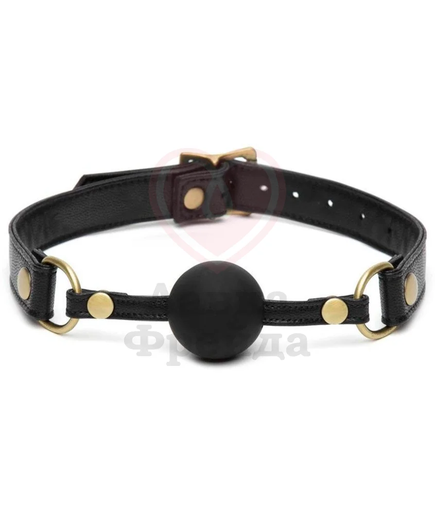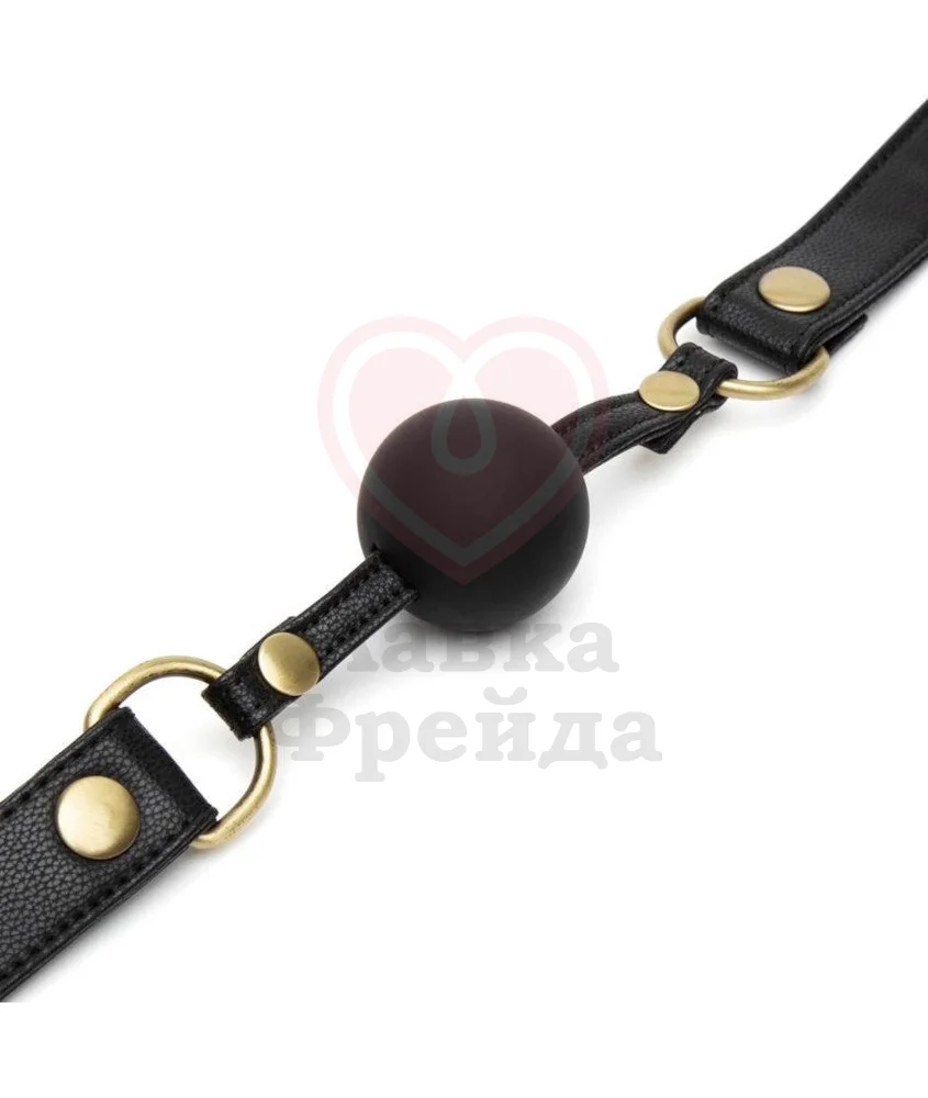 Кляп '50 оттенков серого' Feel it Baby на ремешках из искусственной кожи с шариком из медицинского силикона среднего размера. Для дополнительного украшения используются металлические колечки, придающие аксессуару более интересный вид. Ремешок регулируется при помощи пряжки и 8 специальных отверстий.
