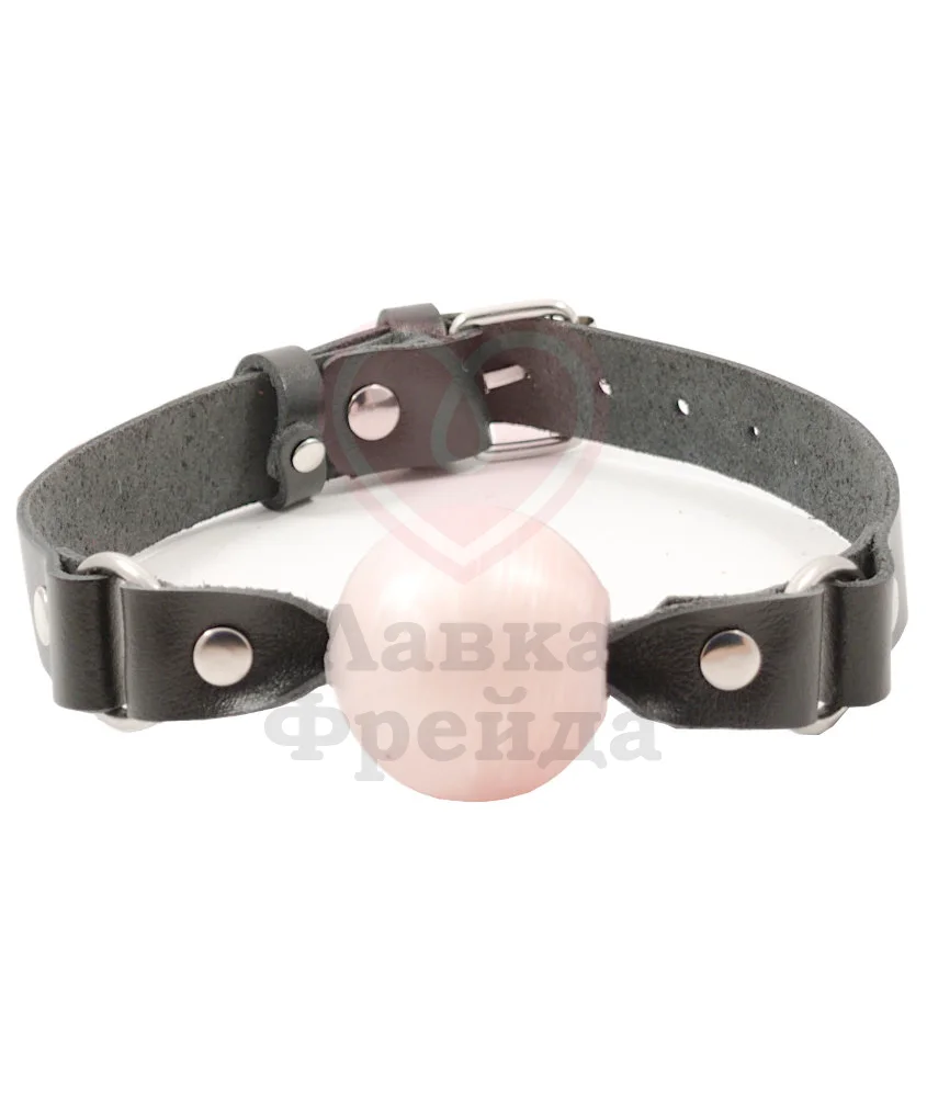 Кляп Лунный Свет состоит из ремешка и упругого шарика с диаметром 4,4 см. Ремешок выполнен из натуральной кожи и регулируется при помощи пряжки. Шарик изготовлен из безопасного силикона, окрашенного пищевым красителем без вкуса и запаха.