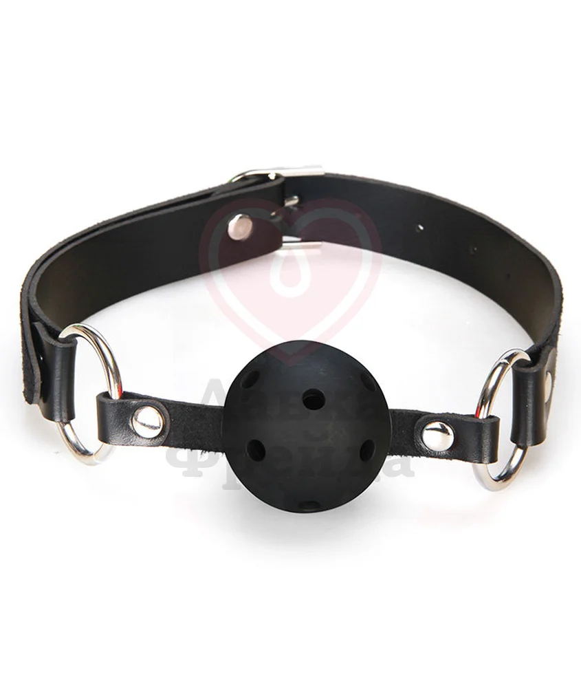 Кляп на ремне Breathable Ball Gag выполнен в виде черного шарика. Небольшие отверстия позволят свободно дышать вашему партнеру, в то время как говорить он совершенно не сможет. Ремень выполнен из искусственной кожи и дополнен металлическими аксессуарами. Красиво выглядит и обладает повышенной прочностью за счет качественного исполнения. Ремешок регулирует длину обхвата кляпа от 42 см до 60 см. Диаметр шарика 4,5 см.