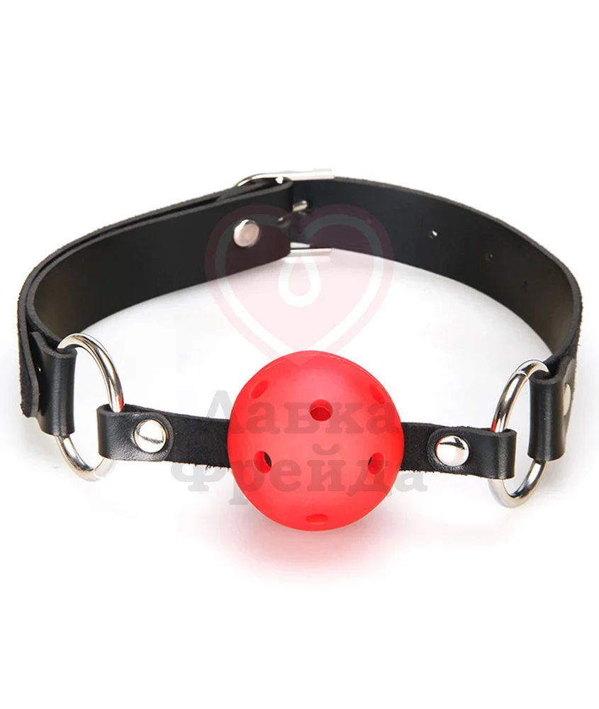 Кляп на ремне Breathable Ball Gag выполнен в виде красного шарика. Небольшие отверстия позволят свободно дышать вашему партнеру, в то время как говорить он совершенно не сможет. Ремень выполнен из искусственной кожи и дополнен металлическими аксессуарами. Красиво выглядит и обладает повышенной прочностью за счет качественного исполнения. Ремешок регулирует длину обхвата кляпа от 42 см до 60 см. Диаметр шарика 4,5 см.