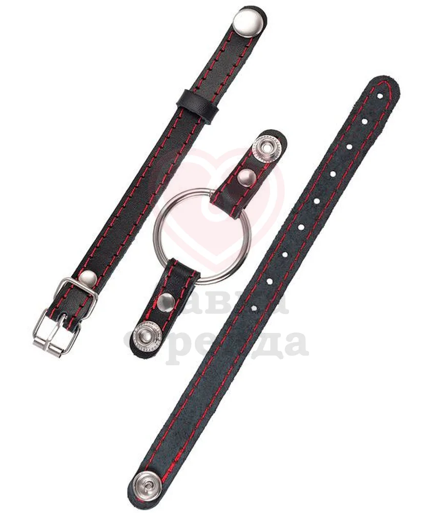 Кляп Pecado BDSM, украшенный контрастной алой строчкой, изготовлен из качественной натуральной кожи - прочного, износостойкого материала, достаточного мягкого, чтобы не травмировать во время носки. Стальное кольцо-расширитель, диаметр которого 4 см, крепится к ремням с помощью удобных кнопок. Аксессуар также дополнен пряжкой, которая дает возможность регулировать обхват кляпа, поэтому он будет впору практически на любой размер головы.