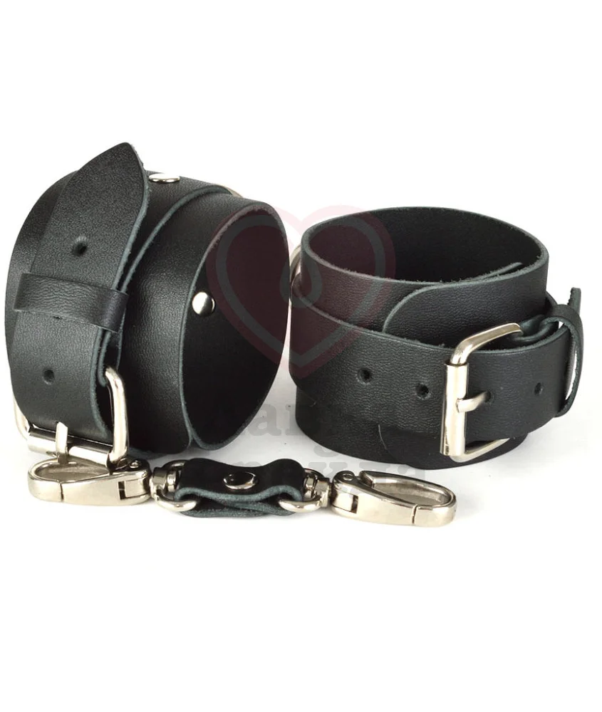 Эффектные наручники Ideal изготовлены из высококачественной натуральной кожи - плотной, но достаточно мягкой, чтобы не травмировать нежную кожу запястий. Между собой браслеты соединены перемычкой с двумя карабинами, которую можно снять и превратить изделия в экстравагантный аксессуар. Размер регулируется ремнями и металлическими пряжками, поэтому наручники будут впору практически на любой размер руки, как женской, так и мужской.
