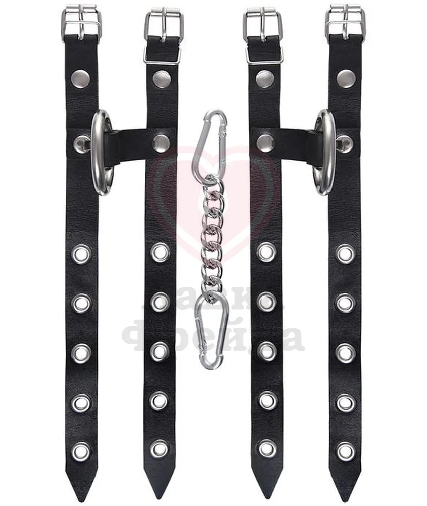 Среди других, эти кожаные наручники выделяются оригинальным дизайнерским решением. Они выполнены из натуральной кожи и соединены карабинами на металлической цепочке. Каждый из двух ремешков, которые представляют из себя манжеты, регулируется с помощью стильных пряжек, органично вписывающихся в общий стиль.