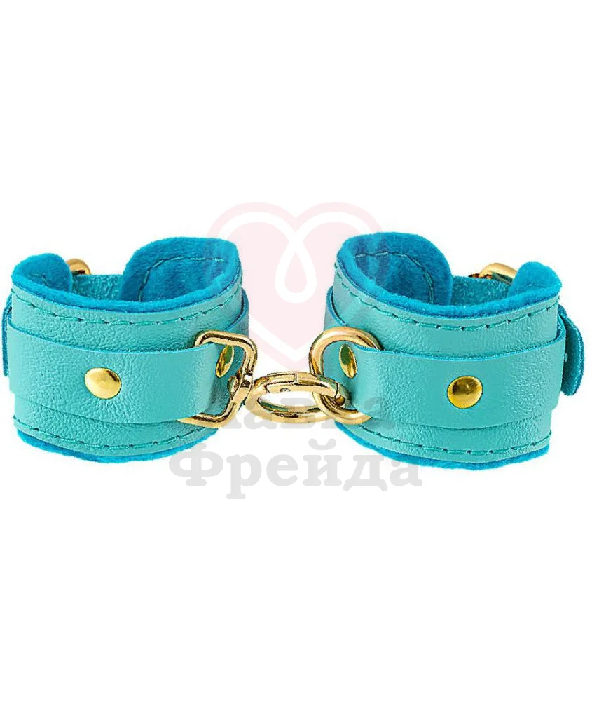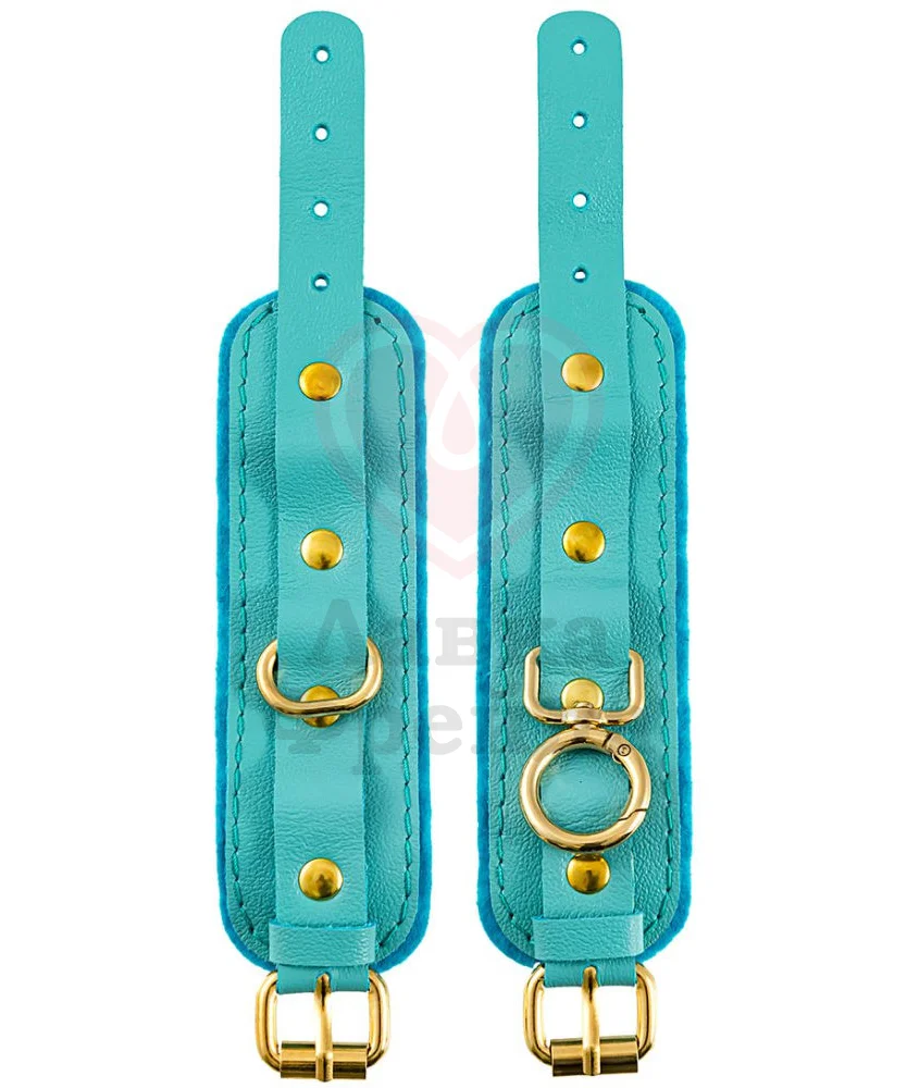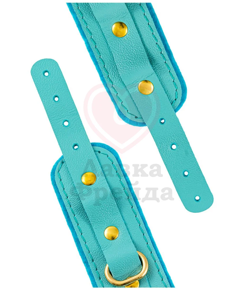 Наручники Pecado BDSM созданы для обладательниц хрупкого запястья - регулируемый ремень комфортно садиться на самую миниатюрную руку. Изготовлено из высококачественной натуральной кожи ярко-голубого цвета, дополненной подкладом из мягчайшего фетра. Золотистая фурнитура, которая не расстегивается даже при активном движении, выполнена из прочного и долговечного металла.