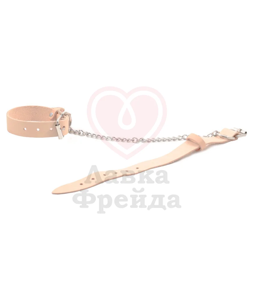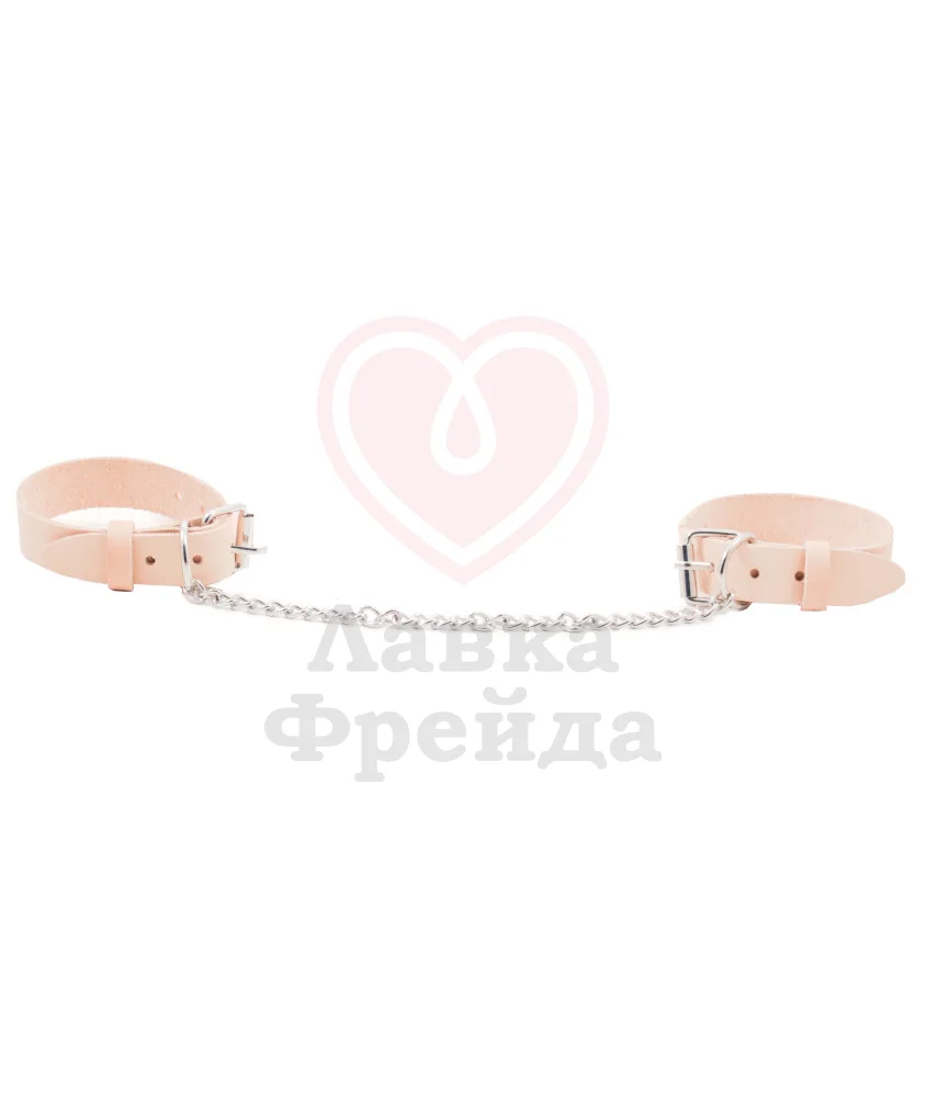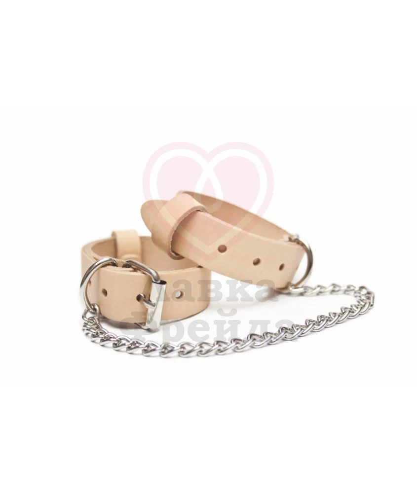 Тонкие и изящные наручники из натуральной кожи соединены между собой металлической цепочкой. Такой атрибут станет прекрасным подарком и практичным решением для ролевых игр в постели. Мягкие наручники регулируются в обхвате при помощи ремешков: от 15 до 23 см. Цепочка имеет длину 20 см.