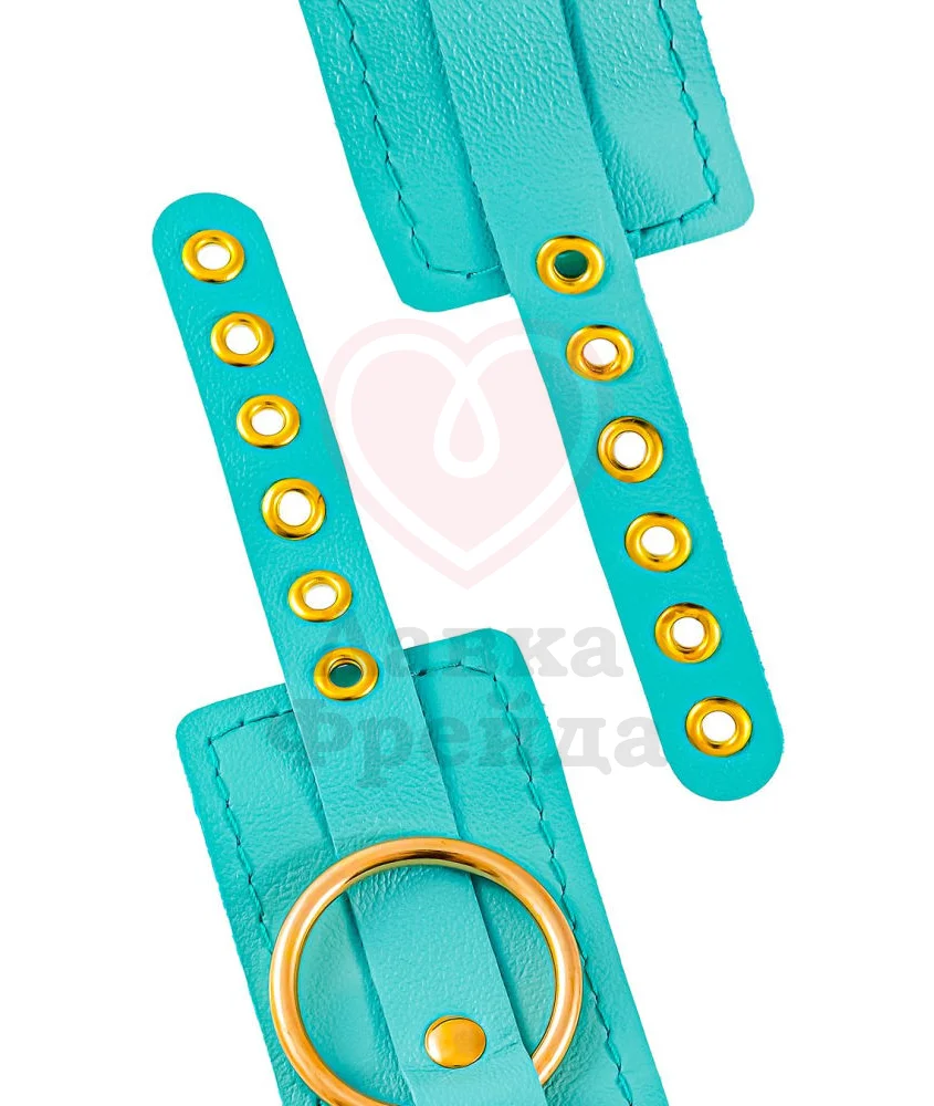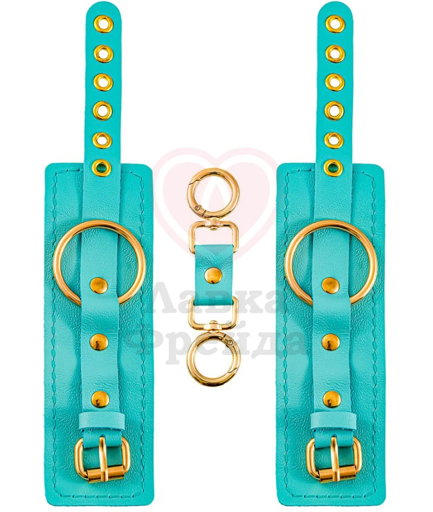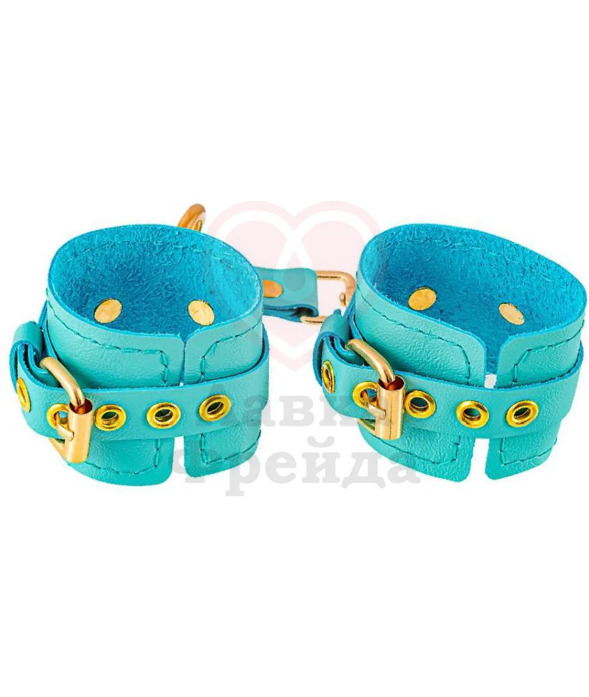 Однослойные наручники Pecado BDSM сделаны из ярко-голубой натуральной кожи, дополненной прочной, устойчивой к повреждениям, стальной фурнитурой золотистого оттенка. Регулируемые ремни комфортно садятся на любой обхват запястий, как у женщин, так и у мужчин.