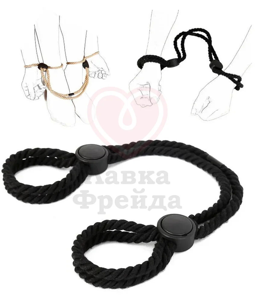 Наручники из веревки дополнены регулируемыми пряжками, они мягко зафиксирует партнёра в откровенной позе, ограничив его движения. За счёт регулируемого размера оковы подойдут для рук или ног и будут впору на любой обхват запястья или щиколотки.