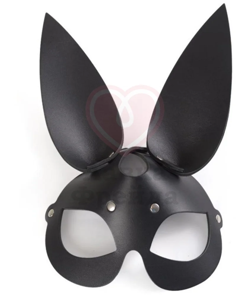 Маска с ушками превратит вас в игривого зайчика — классический и элегантный чёрный цвет и серебристые клёпки из металла придадут вам утончённый и строгий вид. Маска выполнена из натуральной кожи и имеет большие вырезы для глаз, которые будут выгодно подчёркивать ваш взгляд. Аксессуар закрепляется на голове при помощи эластичного ремешка, обеспечивая надёжную и универсальную для всех фиксацию.