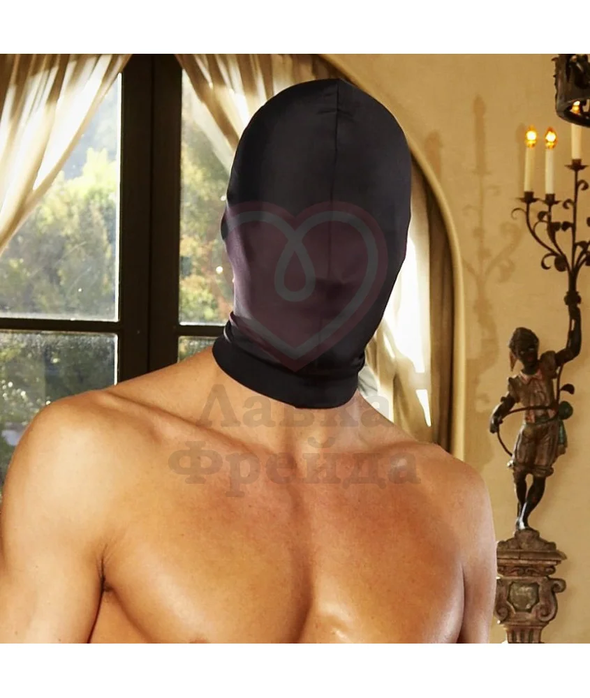 Плотная эластичная тянущаяся маска на голову черного цвета из материала с добавлением хлопка. Маска полностью глухая - закрывает глаза, нос и рот. Размер универсальный.