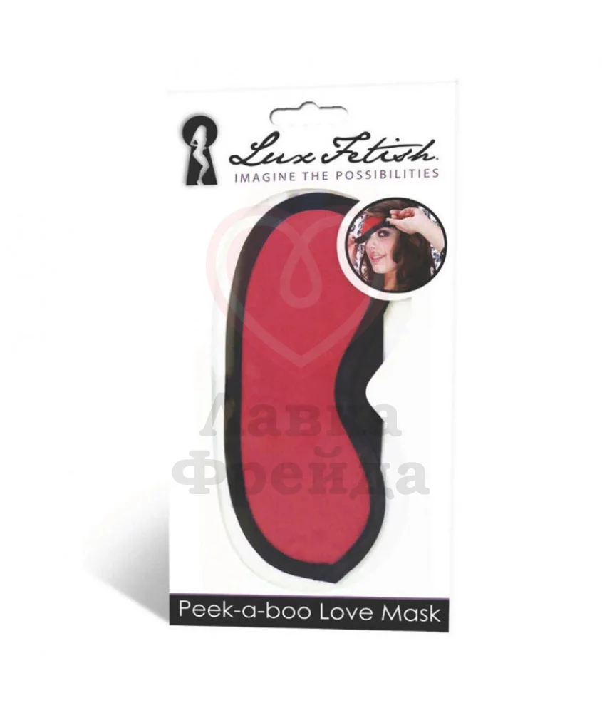 Маска на глаза красного цвета Peek-A-Boo Love Mask подойдет для сексуальных игр или повседневного сна. Шелковистая чёрная подкладка не пропускает ни одного лучика света за счет плотного, но неощутимого контакта с кожей. Снаружи отделана мягким и приятным на ощупь материалом красного цвета. Фиксируется двойными резинками с каждой стороны, при этом не передавливает. Удобна для использования с волосами любой длины, не закручивает их и не спутывает.