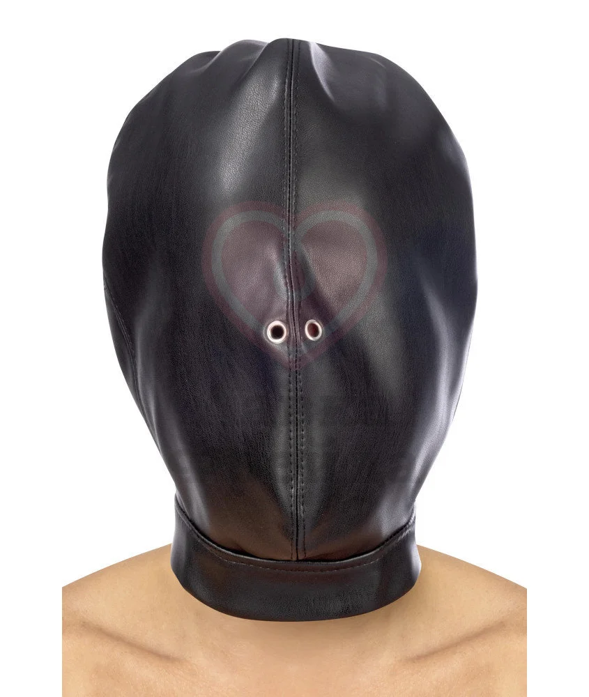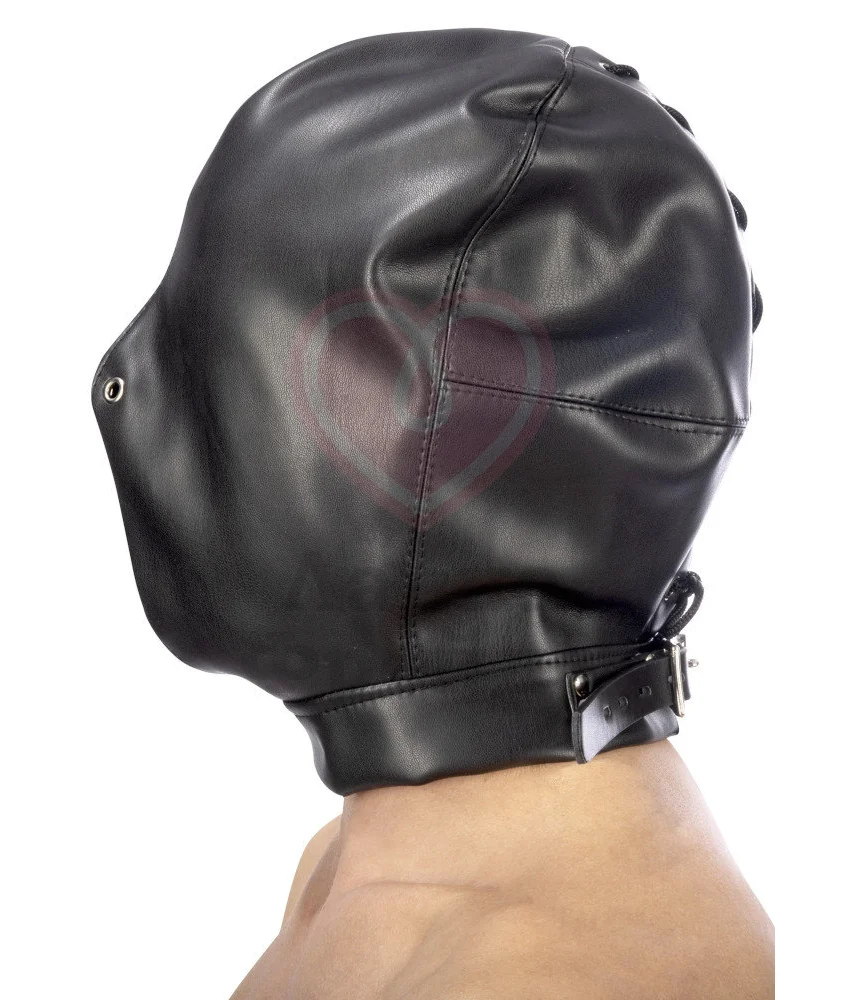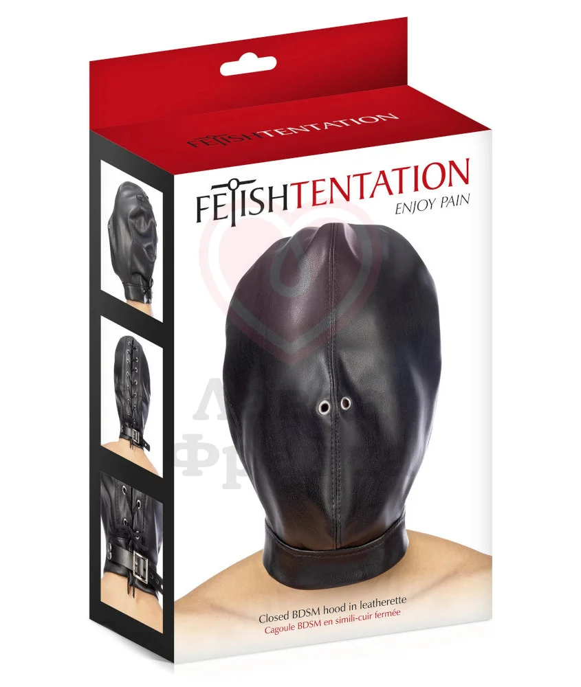 Закрытая маска Fetish Tentation, выполненная из искусственной кожи, полностью лишает вас большей части чувств, чтобы вы полностью доверились партнеру во время игры. Эта модель маски имеет только небольшие вырезы для дыхания. Плотный материал не пропускает свет и не позволяет подглядывать, но обеспечивает слышимость окружающих звуков. Маска регулируется по размеру при помощи шнуровки сзади и фиксируется ремешком на шее.