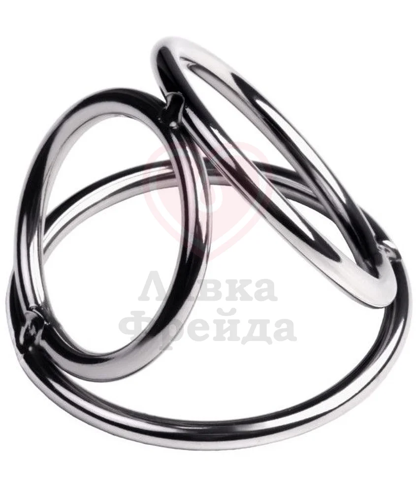 Тройной бондаж для пениса. Кольца различного диаметра фиксируют пенис и мошонку вместе, яички и основание ствола пениса по отдельности. Диаметры колец 35мм/45мм/50мм.