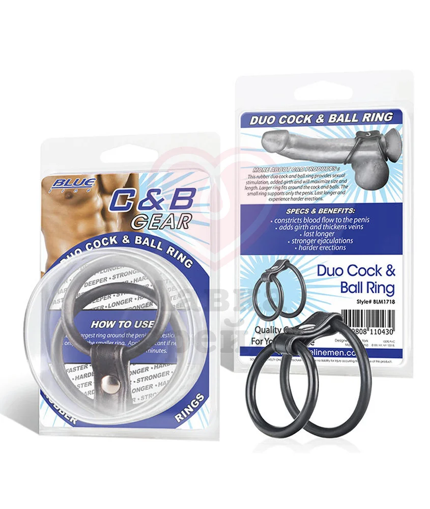 Кольца Duo Cock and Ball Ring, объединенные ремешком из искусственной кожи, подойдут для усиления и продления эрекции. Крупное кольцо (диаметр 5 см) надевается на основание под мошонку, а маленькое (диаметр 4 см) – на сам пенис. В результате использования мужчина получает увеличение члена в размере, усиление эрекции и более мощные оргазмы. Использовать можно не более 30 минут.
