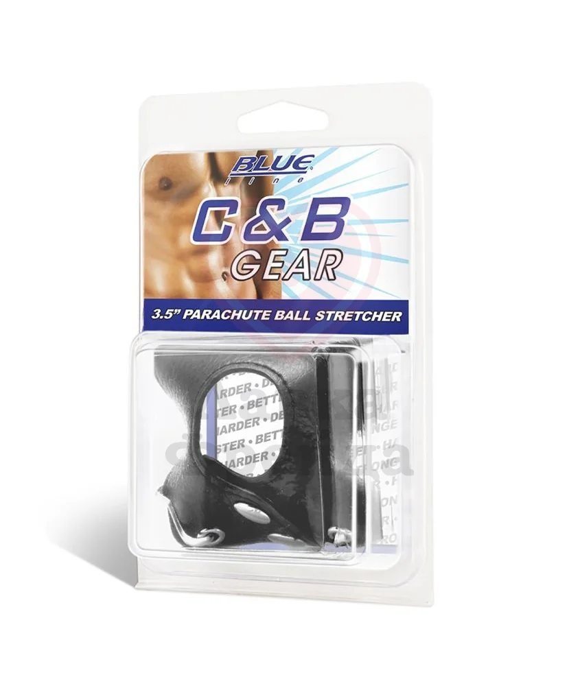 Утяжка Parachute Ball Stretcher надежно зафиксирует мошонку вашего партнера, а утяжеленные металлические цепочки усилят ощущения. Выполнена из качественной искусственной кожи черного цвета и крепится на клепках. Цепочки снизу соединяются со специальным кольцом, для подвешивания дополнительных грузиков весом до 1,3 кг и увеличения давления на мошонку. При этому вы можете отстегнуть цепочки и использовать кожаную утяжку отдельно.