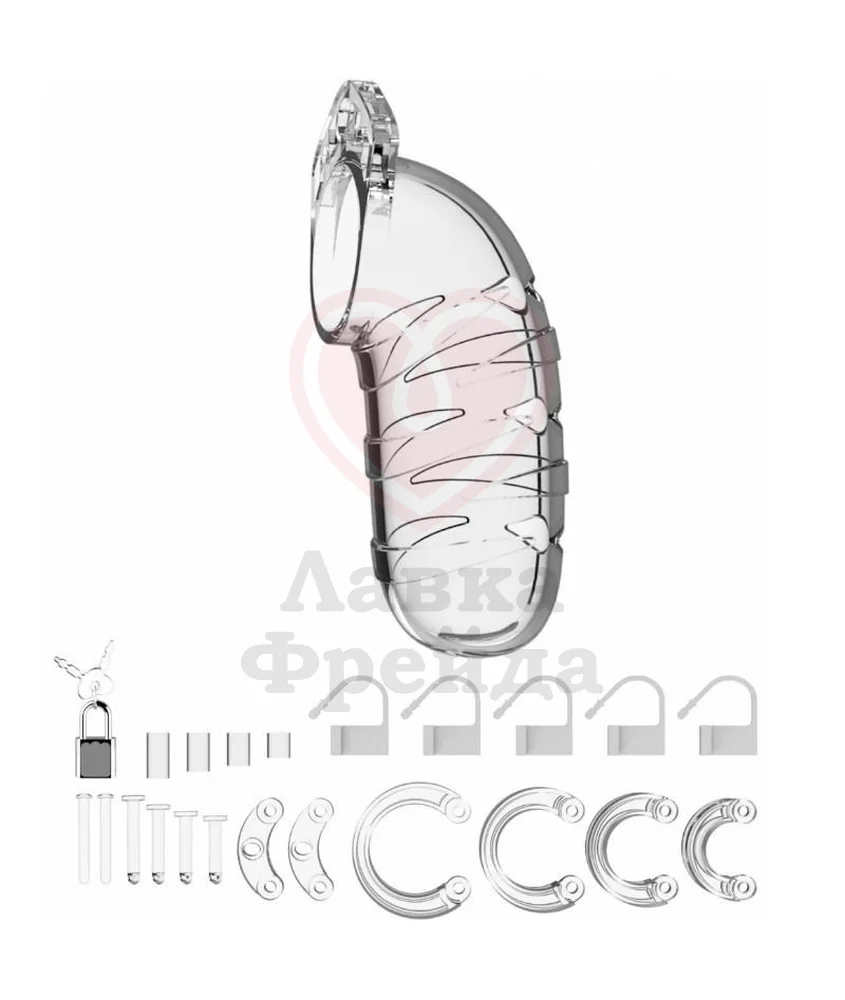 Гипоаллергенный, безопасный и прочный материал игрушки — поликарбонат — достаточно лёгкий, чтобы Man Cage можно было носить в течение долгого времени. Для гигиены также предусмотрены отверстия проветривания и мочеиспускания. Размеры игрушки тоже разные, чтобы вы смогли выбрать себе подходящий, в комплекте есть и дополнительные колечки, чтобы вы собрали себе максимально удобный девайс.