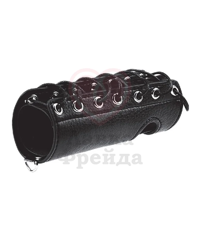 Сбруя для члена Cock Sheath – необычный аксессуар, который фиксируется с помощью шнуровки. Она помогает очень точно регулировать степень зажима, усиливая или ослабляя давление. Дополнительно есть колечко для присоединения других аксессуаров.