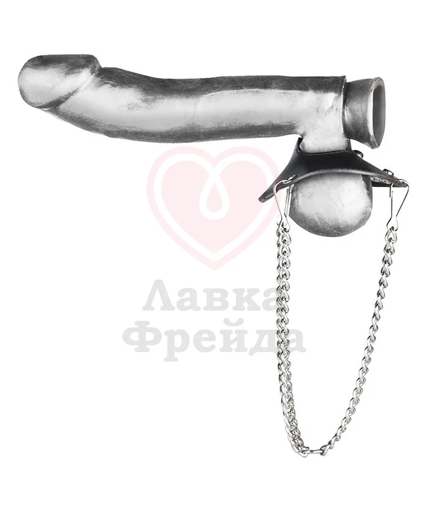 Кожаная утяжка для мошонки с металлическими цепочками Parachute Ball Stretcher