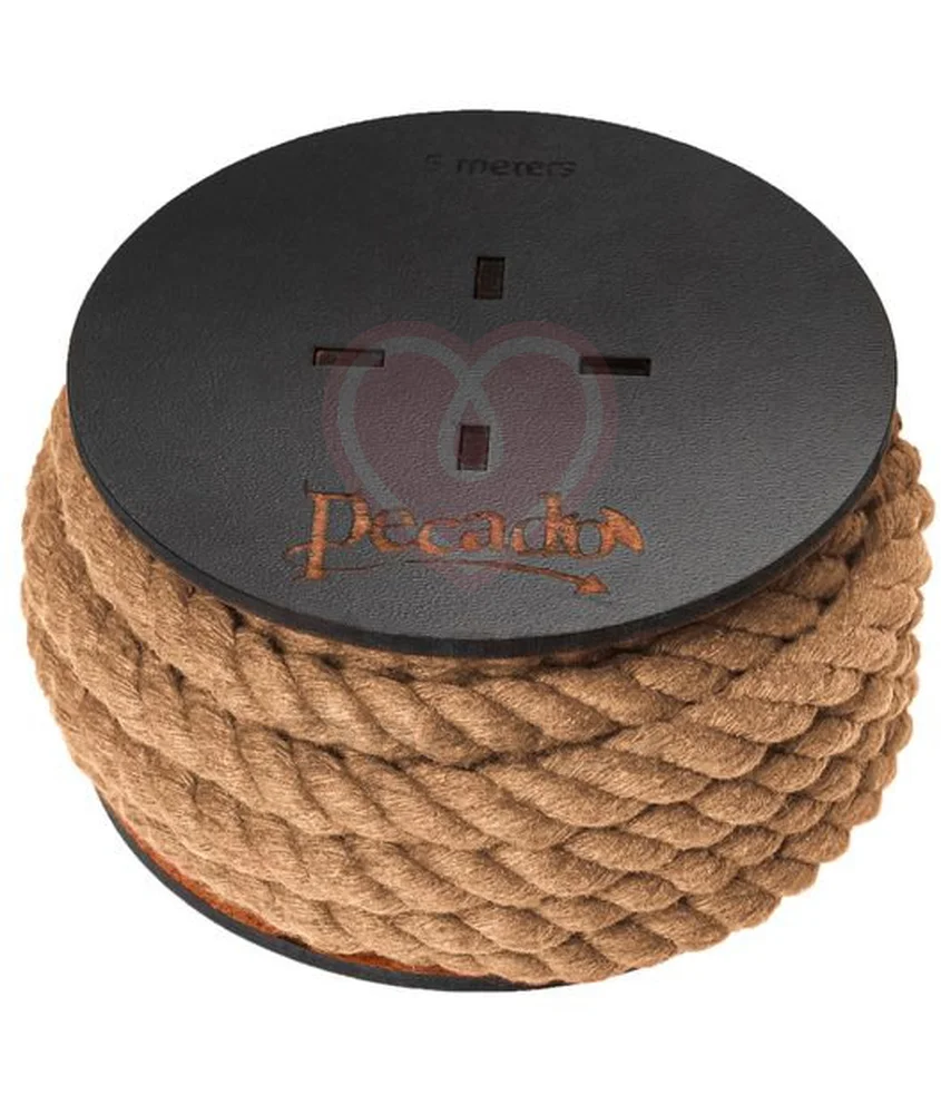 Веревка Pecado BDSM идеально подойдет для практики искусства ограничения подвижности - шибари. Длина изделия 5 метров, дает возможность экспериментировать со сложными позициями, воплощая в жизнь смелые фантазии с фиксацией партнера. Веревка выполнена из качественного натурального джута, который немножко тянется, что дополнительно усилит ощущения от бандажа. Изделие намотано на брендированную катушку, дополненную небольшим пластиковым фиксатором. Толщина веревки - 0,8 см