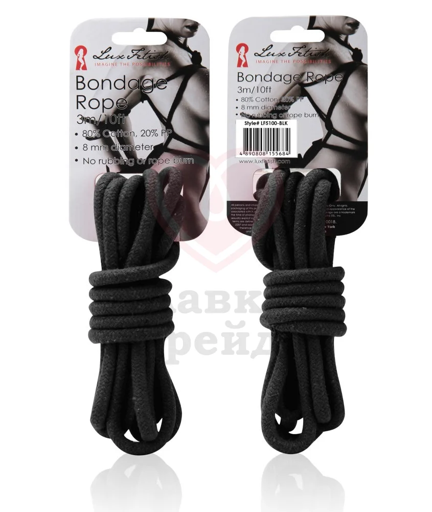 Хлопковая веревка черного цвета Lux Fetish длиной 3 метра подходит для игр со связыванием. С ее помощью вы реализуете множество своих фантазий и сможете получить новое удовольствие, недоступное ранее. В состав входит большая часть хлопка для предотвращения раздражения, а также немного синтетического вещества, которое предотвращает растрепывание веревки. Вы получаете надежный, прочный и удобный аксессуар. Длина веревки 3 метра, диаметр 8 мм.